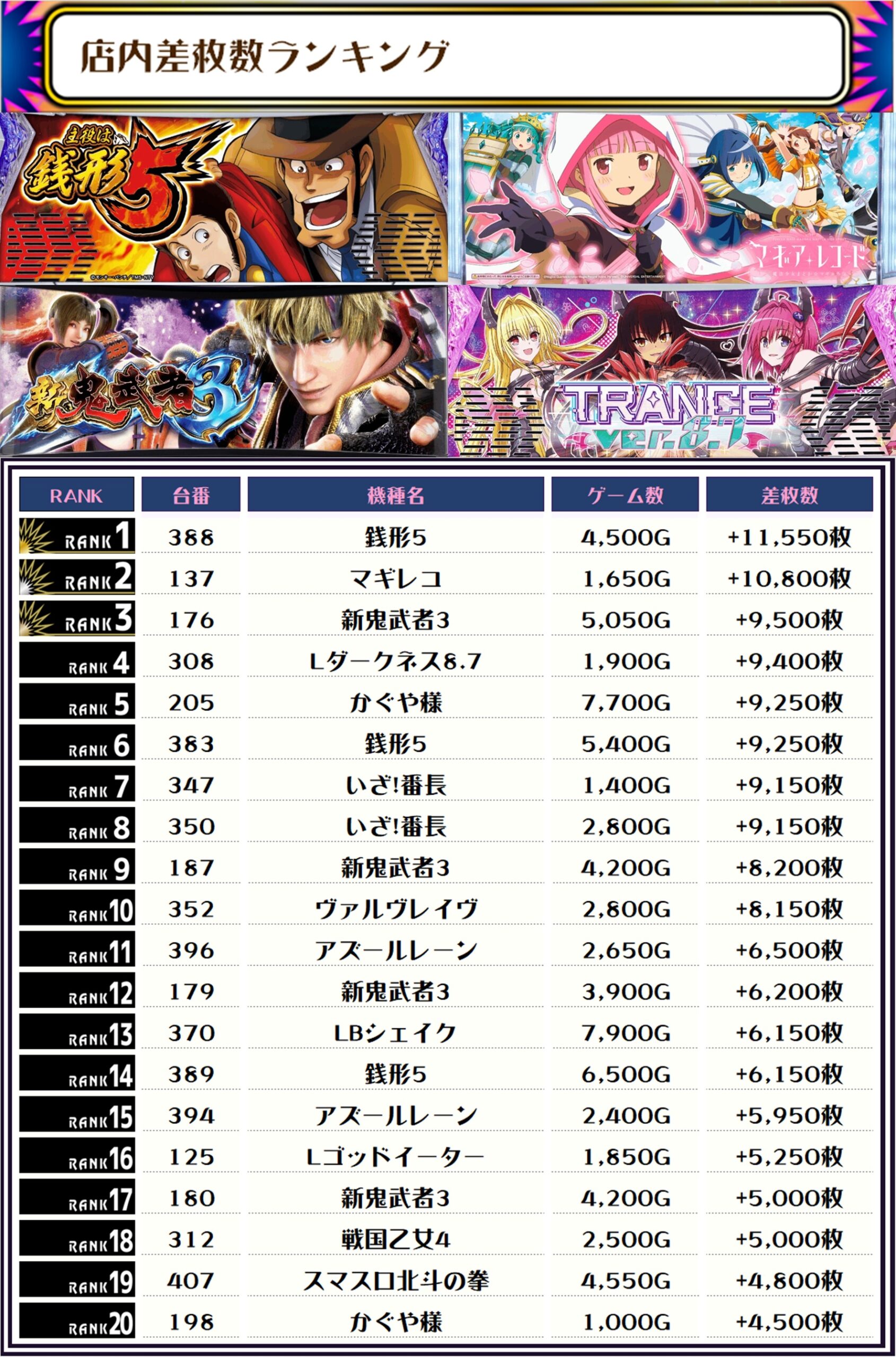 そして、全体の差枚ランキングです🌟