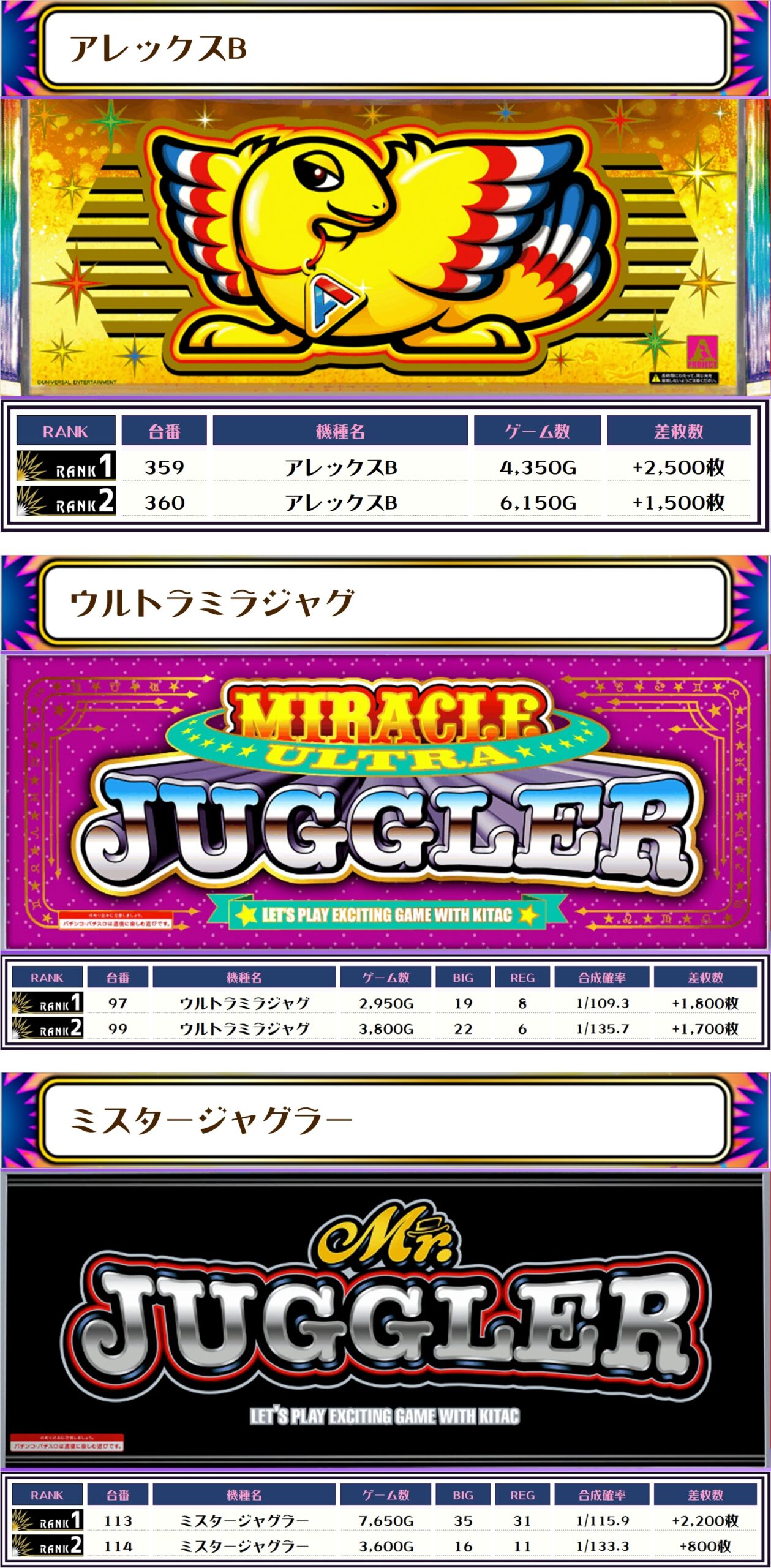 その他の機種の差枚はコチラ🌟