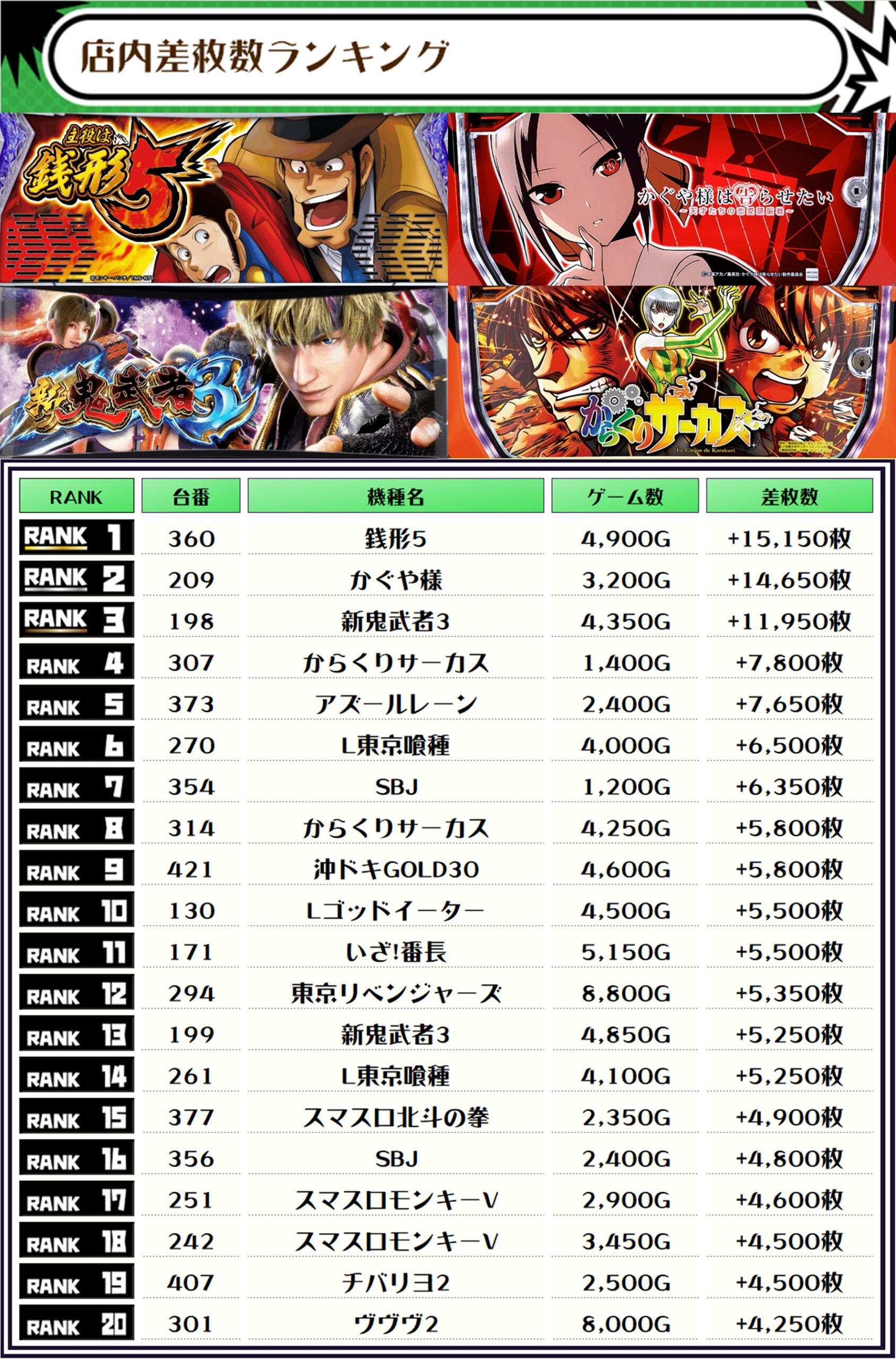 それでは、この日の【機種別差枚ランキング】を見ていきます❗️