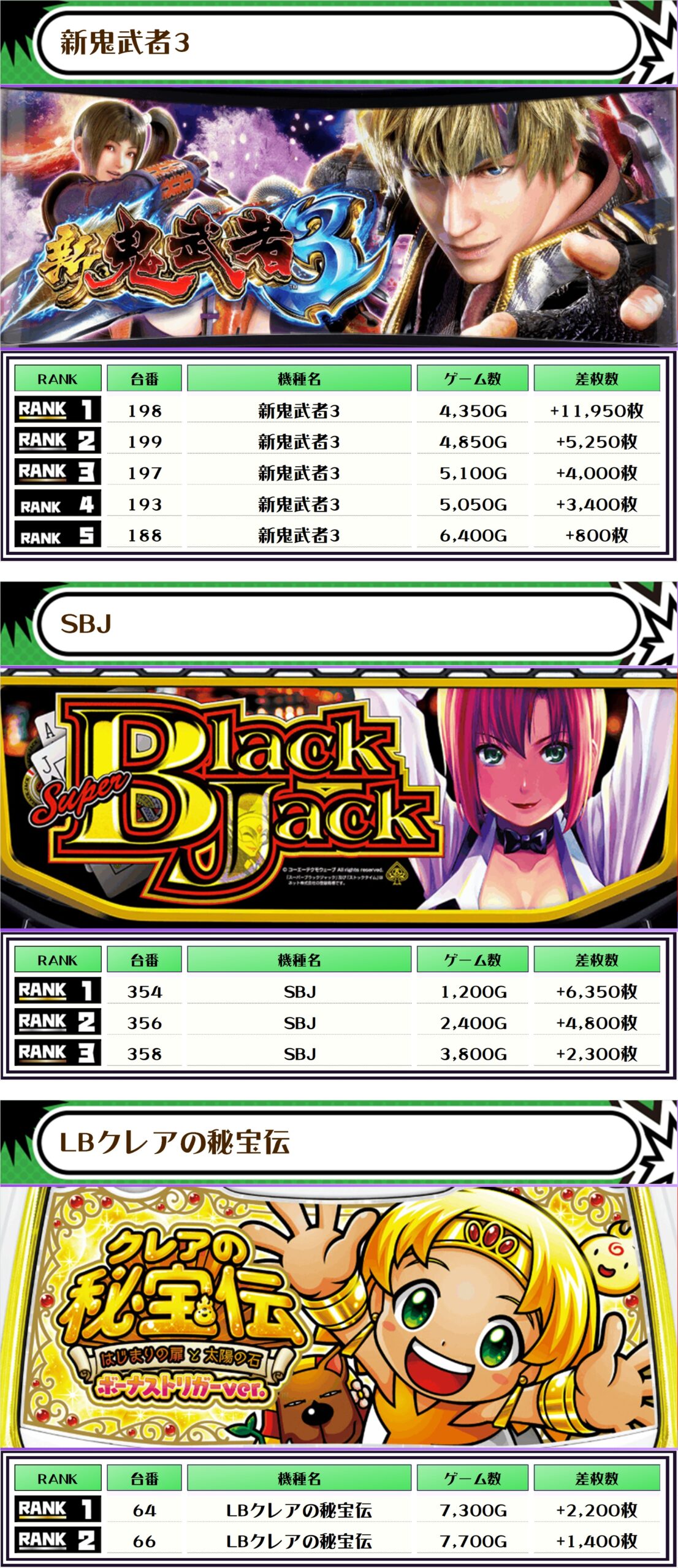 2位には【かぐや様・209番台】の+14,650枚、3位には【新鬼武者3・198番台】の+11,950枚がランクインですっ🏆