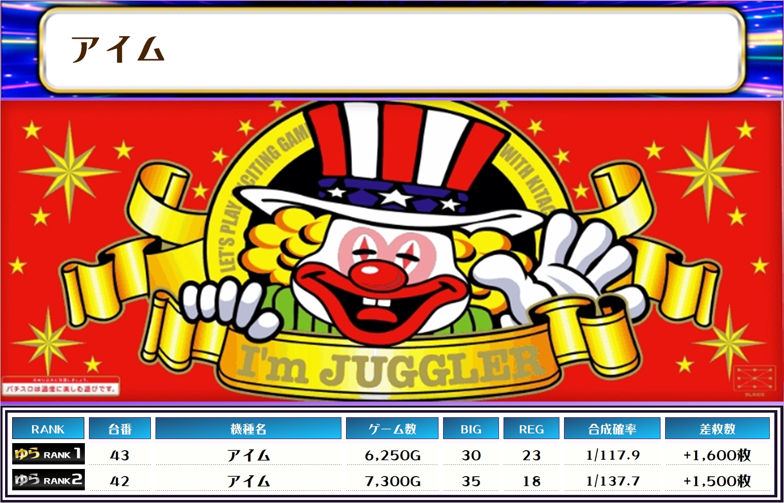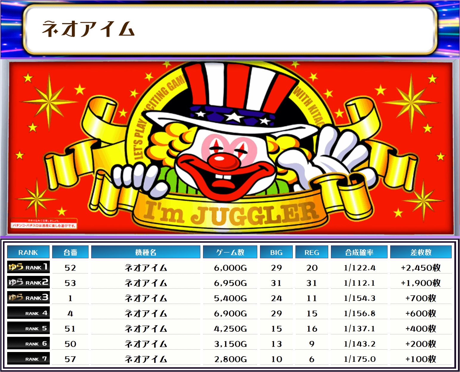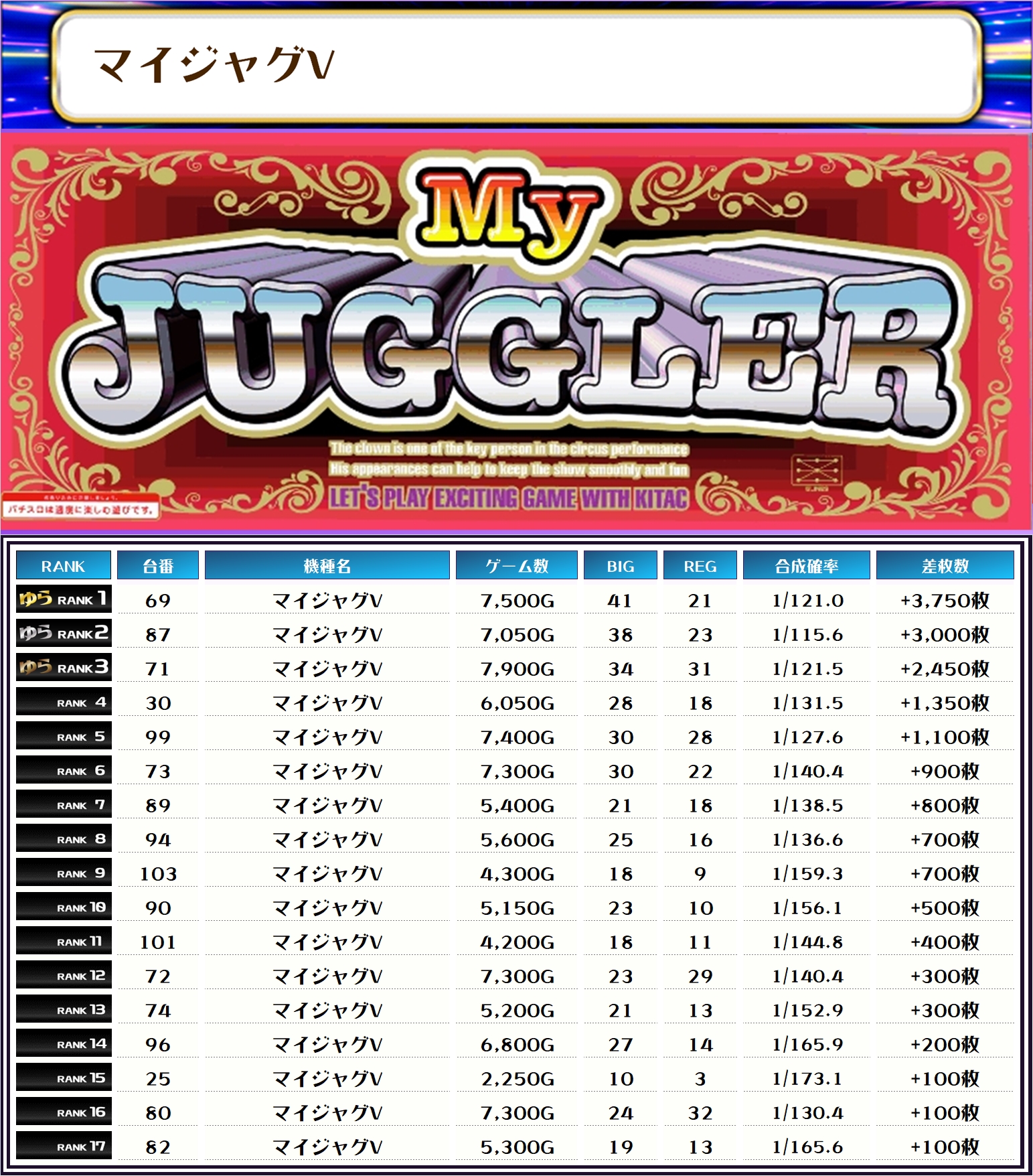 特に設置台が最も多いマイジャグVは半数近くの台がプラス差枚と好調だったようです💕