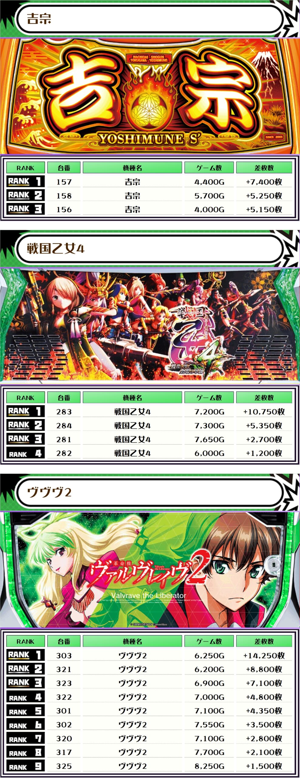 それでは、この日の【機種別差枚ランキング】を見ていきます❗️