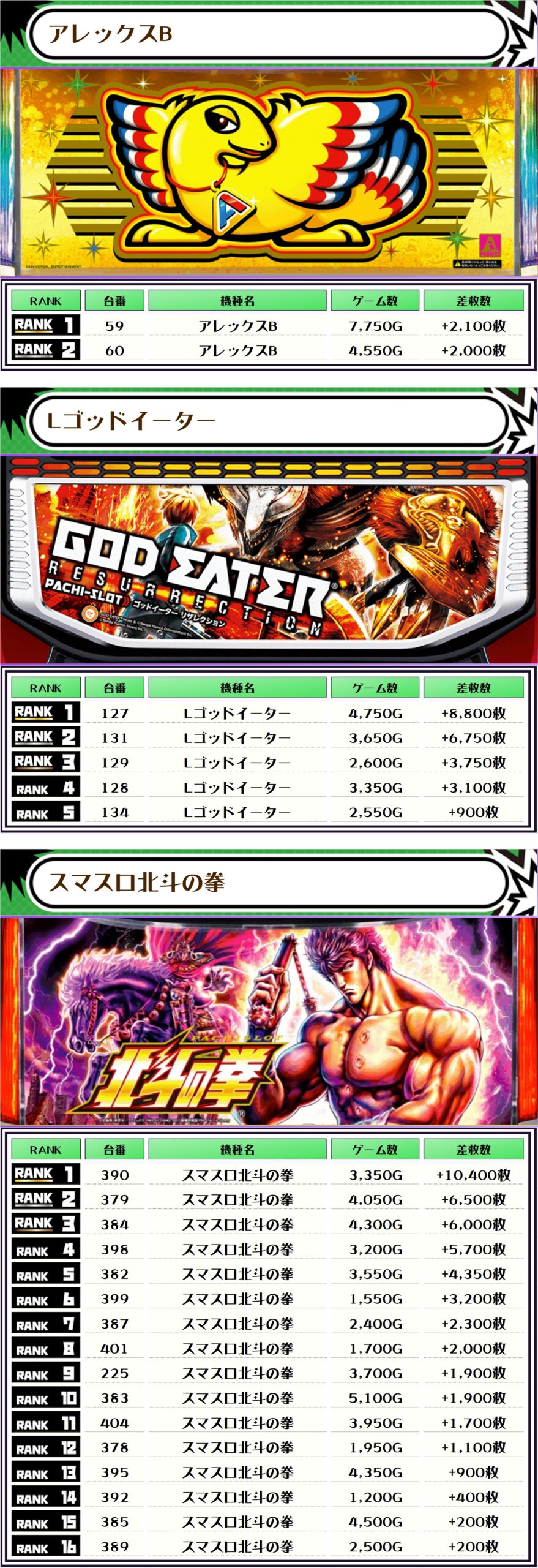 そして、全体の差枚ランキングです🥦