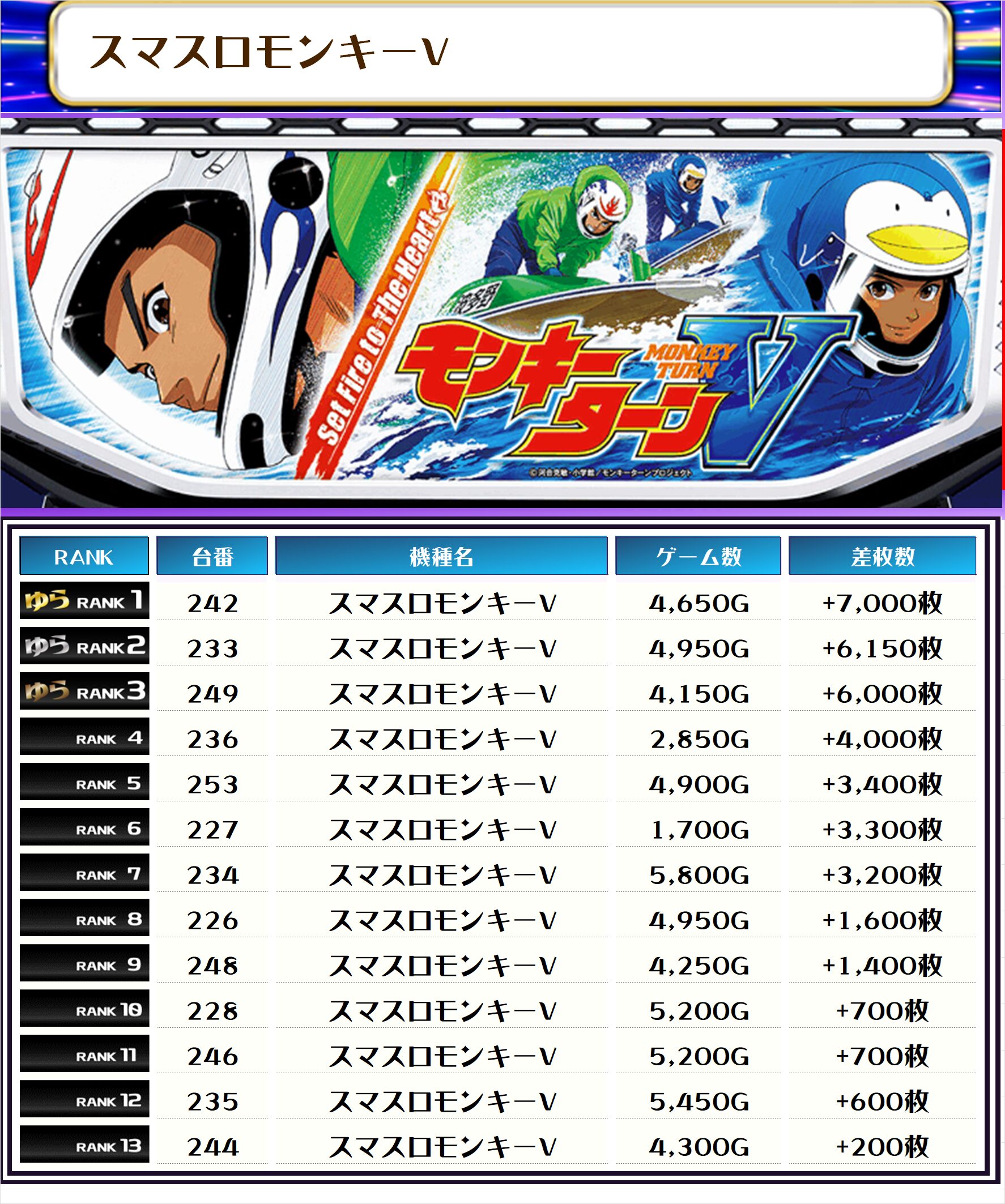2位には【モンハンライズ・185番台】の+7,700枚、そして3位には【ヴヴヴ2・324番台】の+7,250枚がランクインですっ🏆