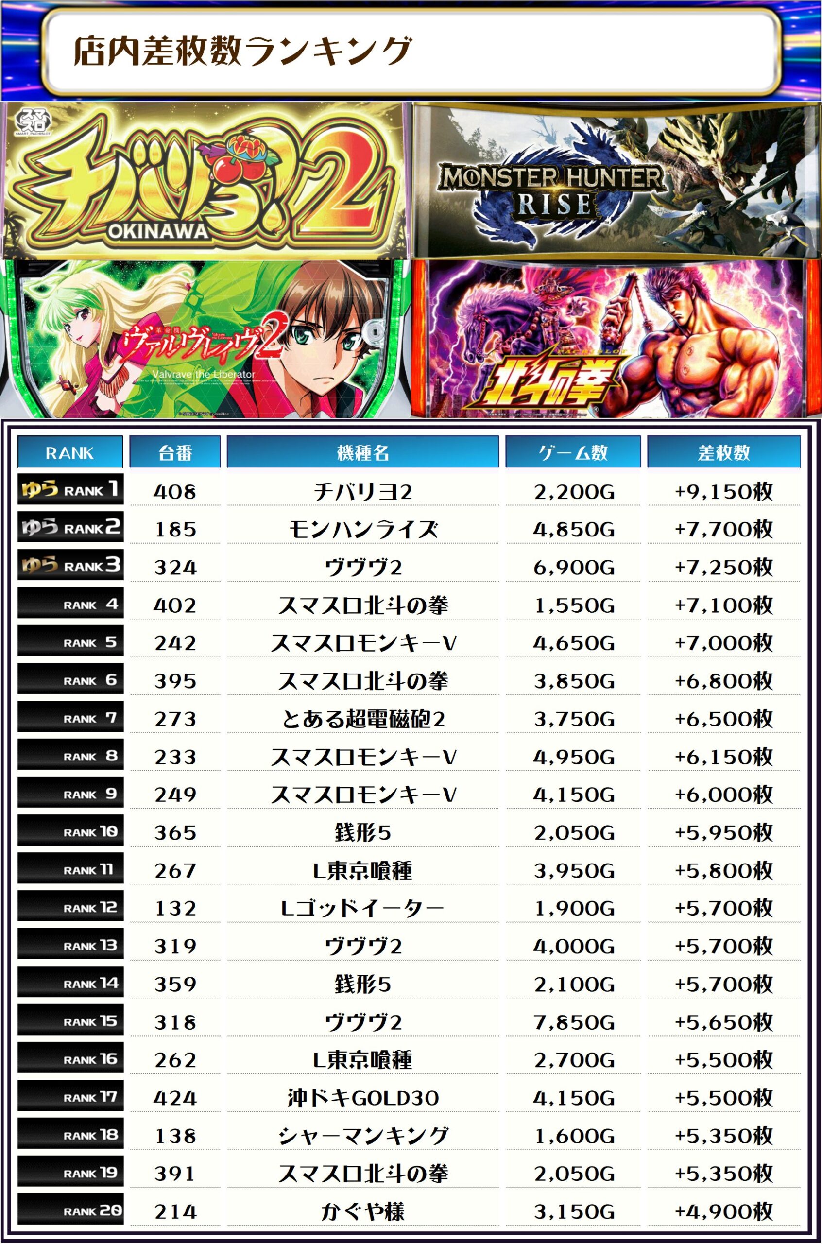 それでは、この日の【機種別差枚ランキング】を見ていきます❗️