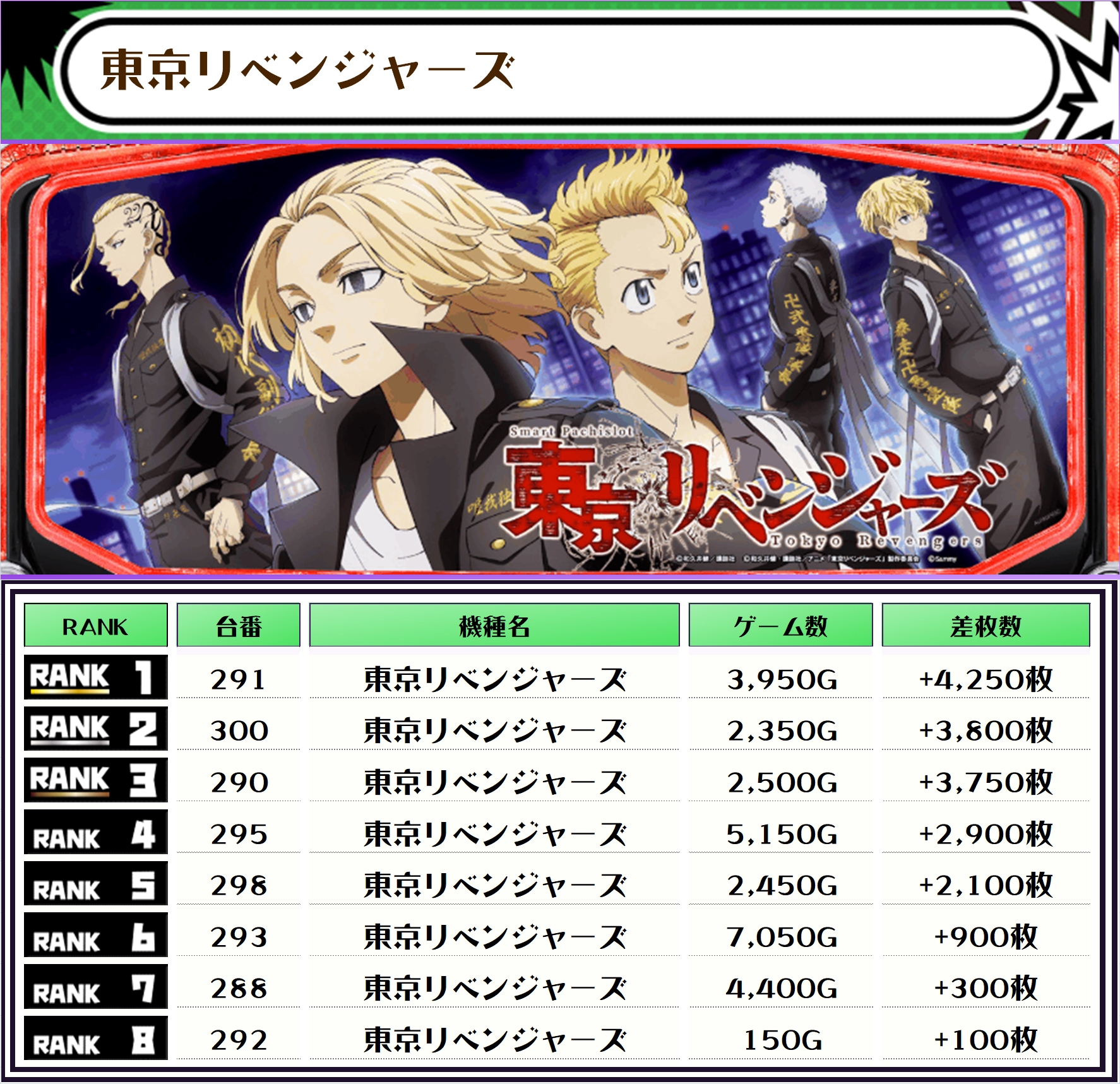 そして、全体の差枚ランキングです🥦
