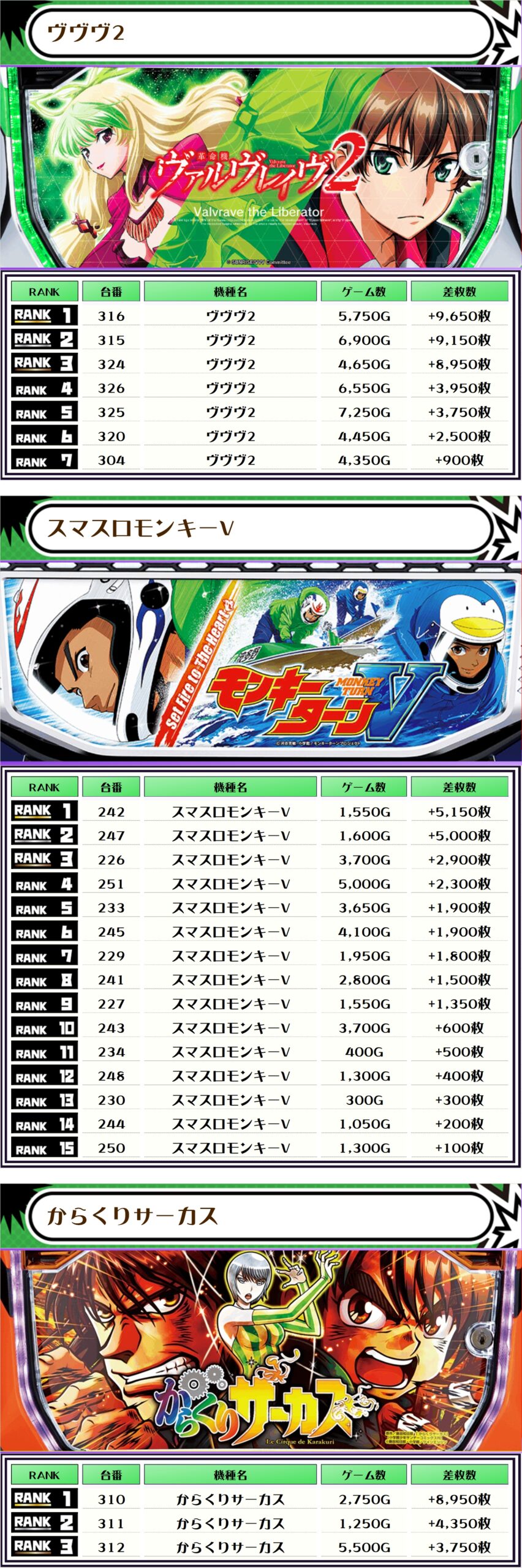 それでは、この日の【機種別差枚ランキング】を見ていきます❗️