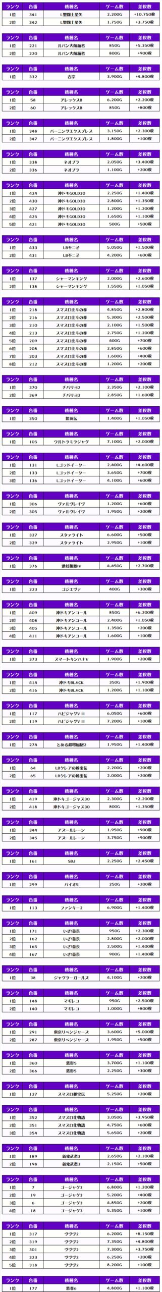 それでは、この日の【機種別差枚ランキング】から見ていくでやんすっ❗️