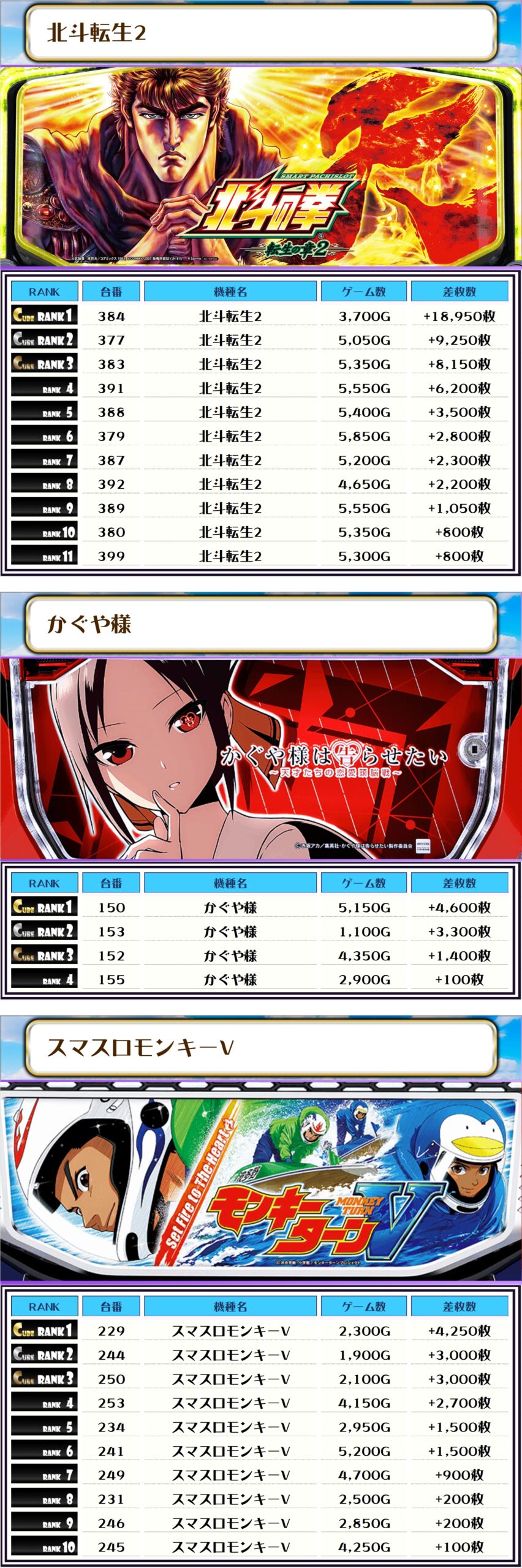その他の機種の差枚はコチラ🌟