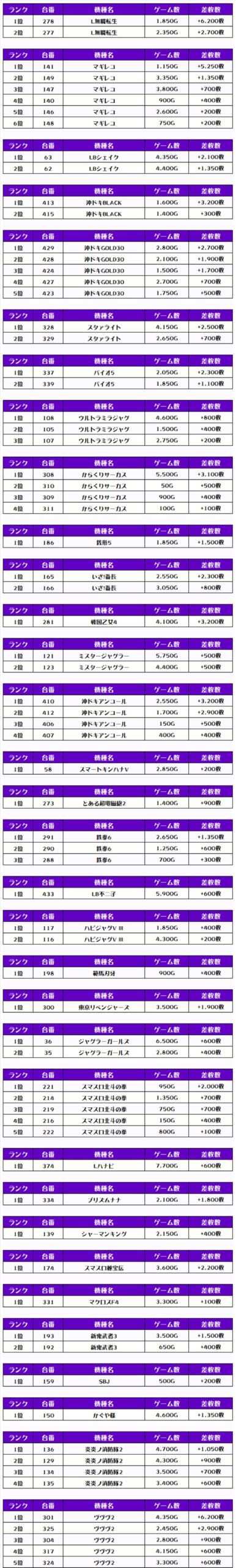 それでは、この日の【機種別差枚ランキング】から見ていくでやんすっ❗️