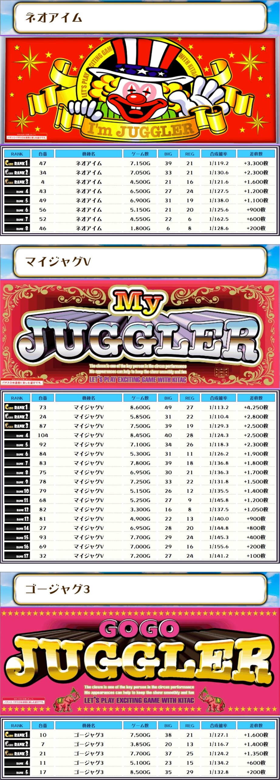 今回もピックアップしたのは稼働が高く、優秀台が多かったと思われる機種でやんすっ📷