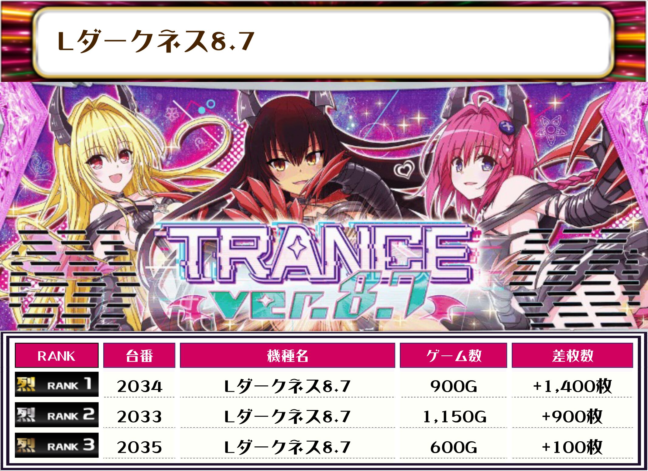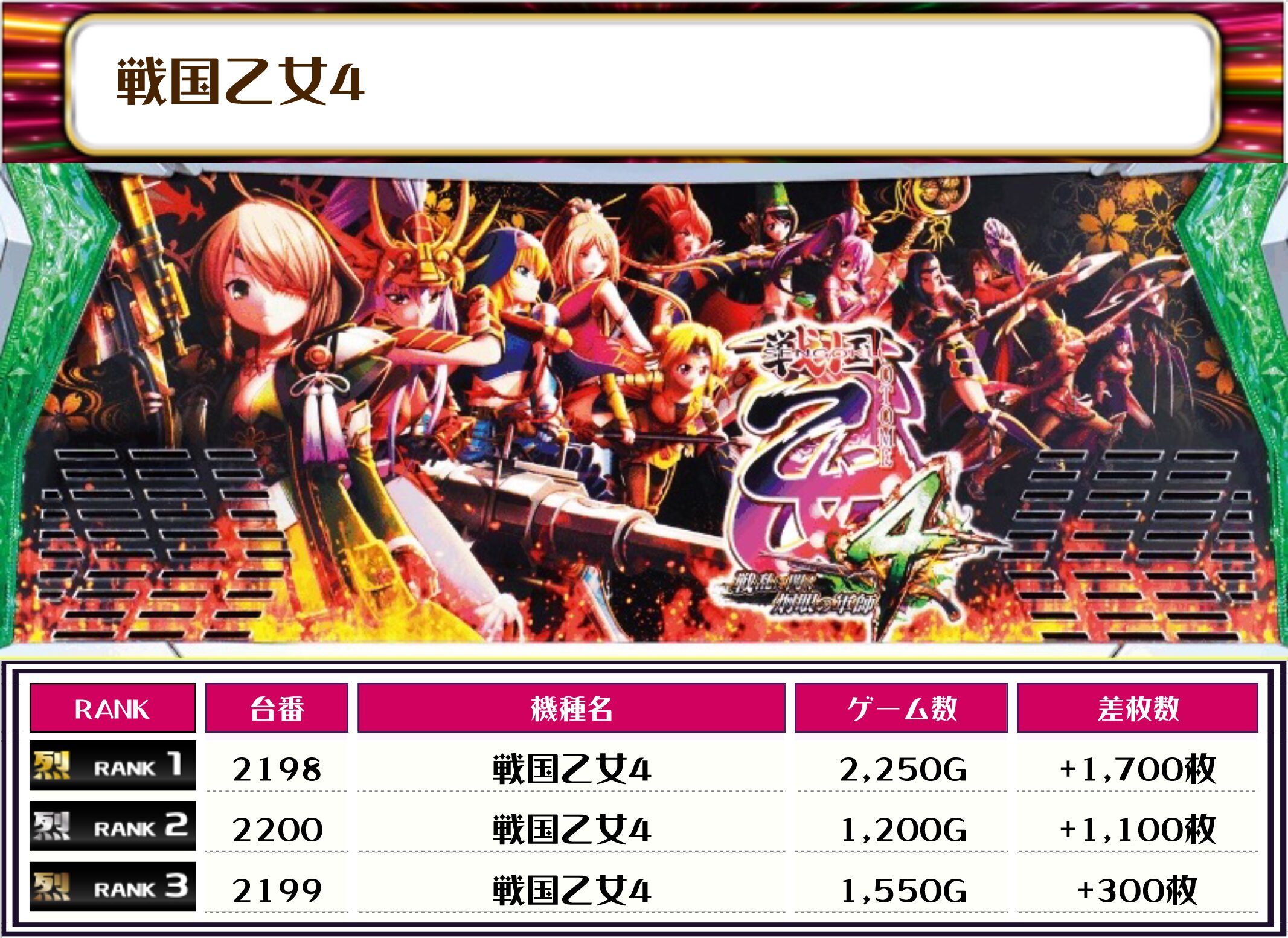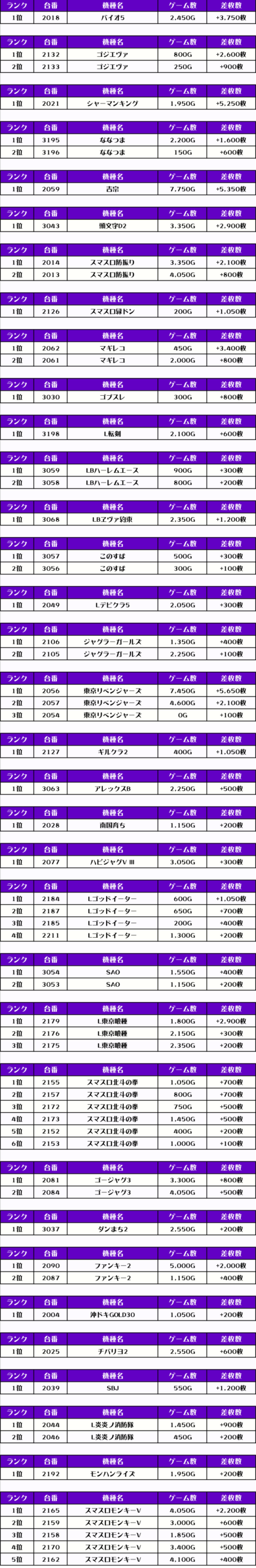 それでは、この日の【機種別差枚ランキング】を見ていきます❗️