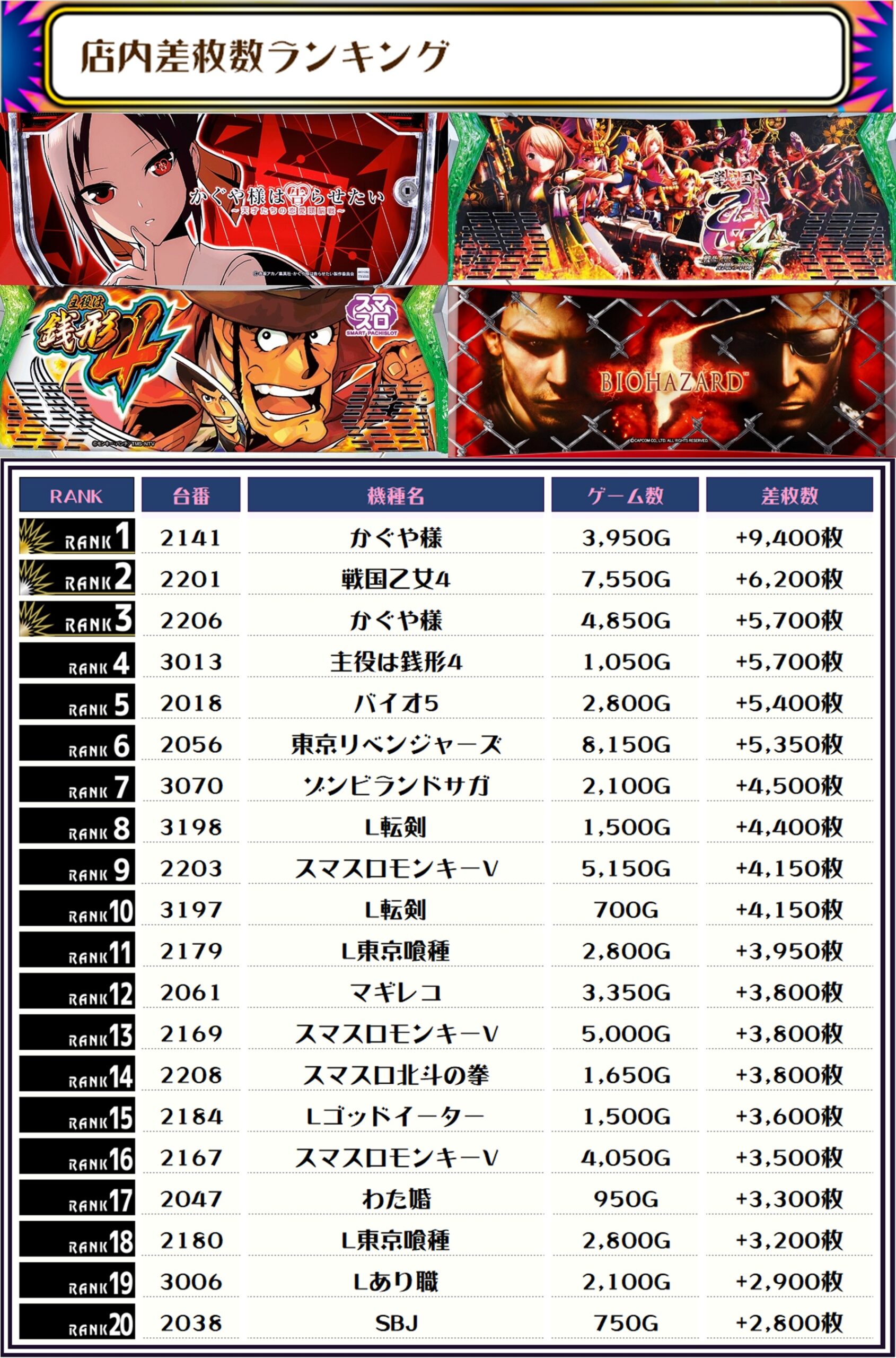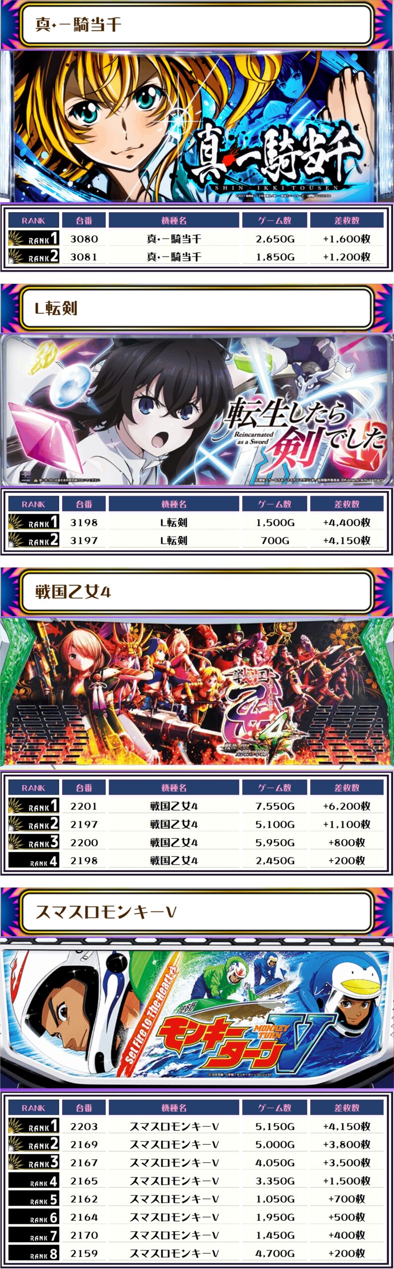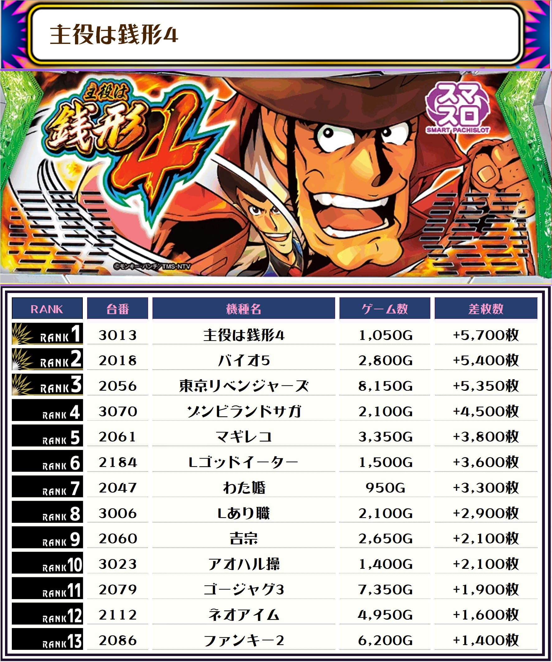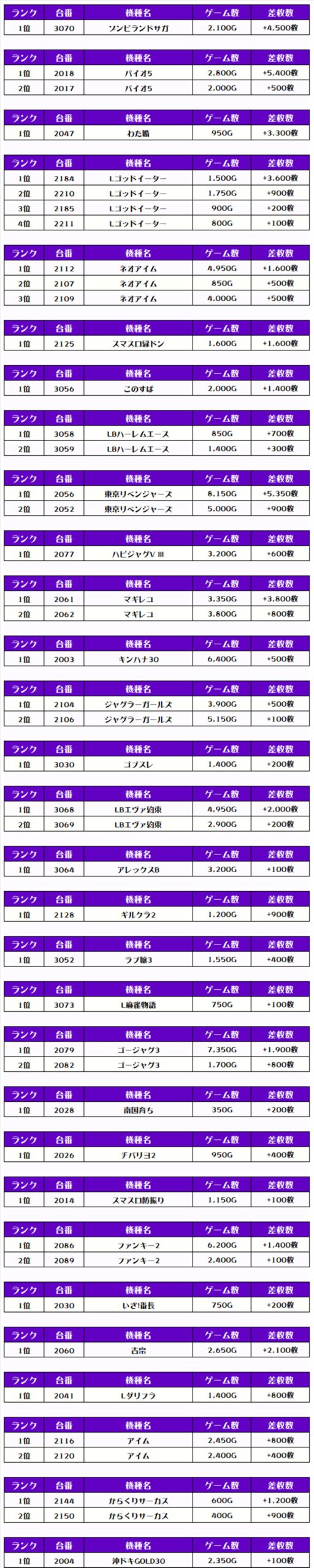 それでは、この日の【機種別差枚ランキング】を見ていきます❗️