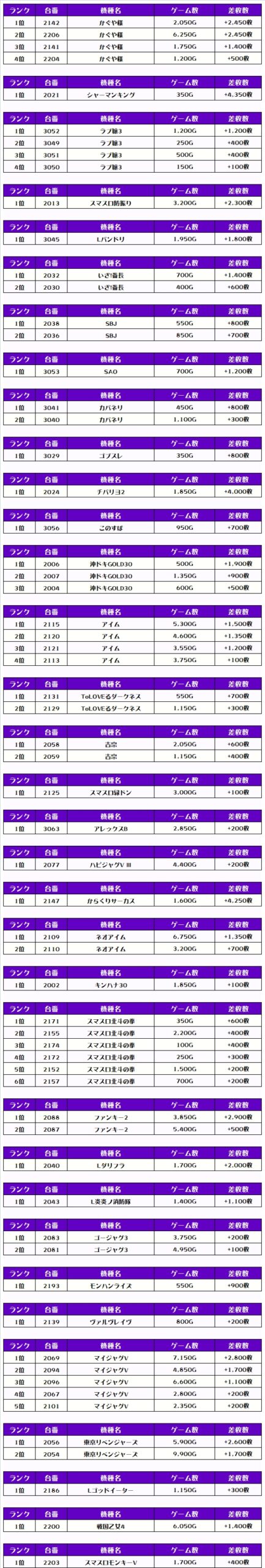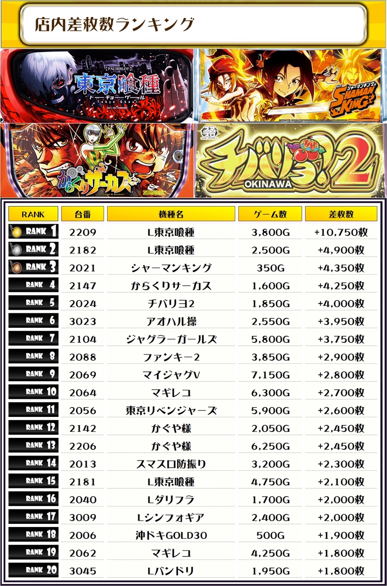それでは、この日の【機種別差枚ランキング】を見ていくぞ❗️