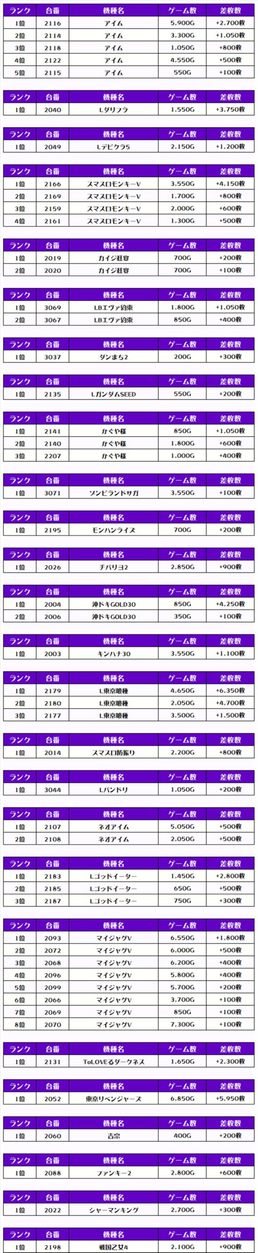 それでは、この日の【機種別差枚ランキング】を見ていきましょう❗️