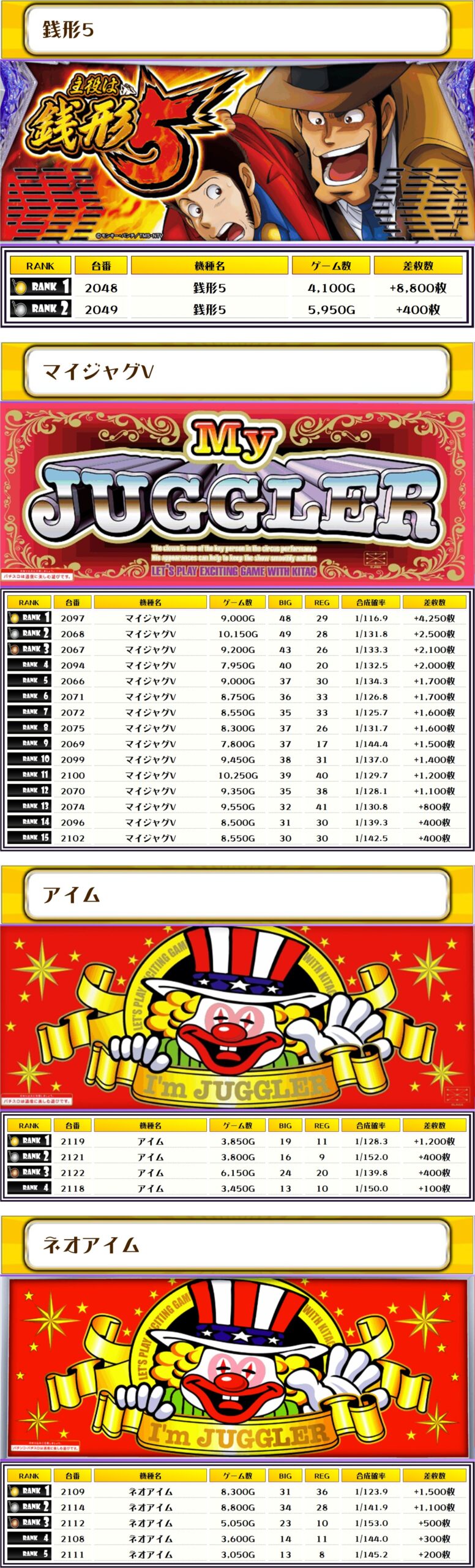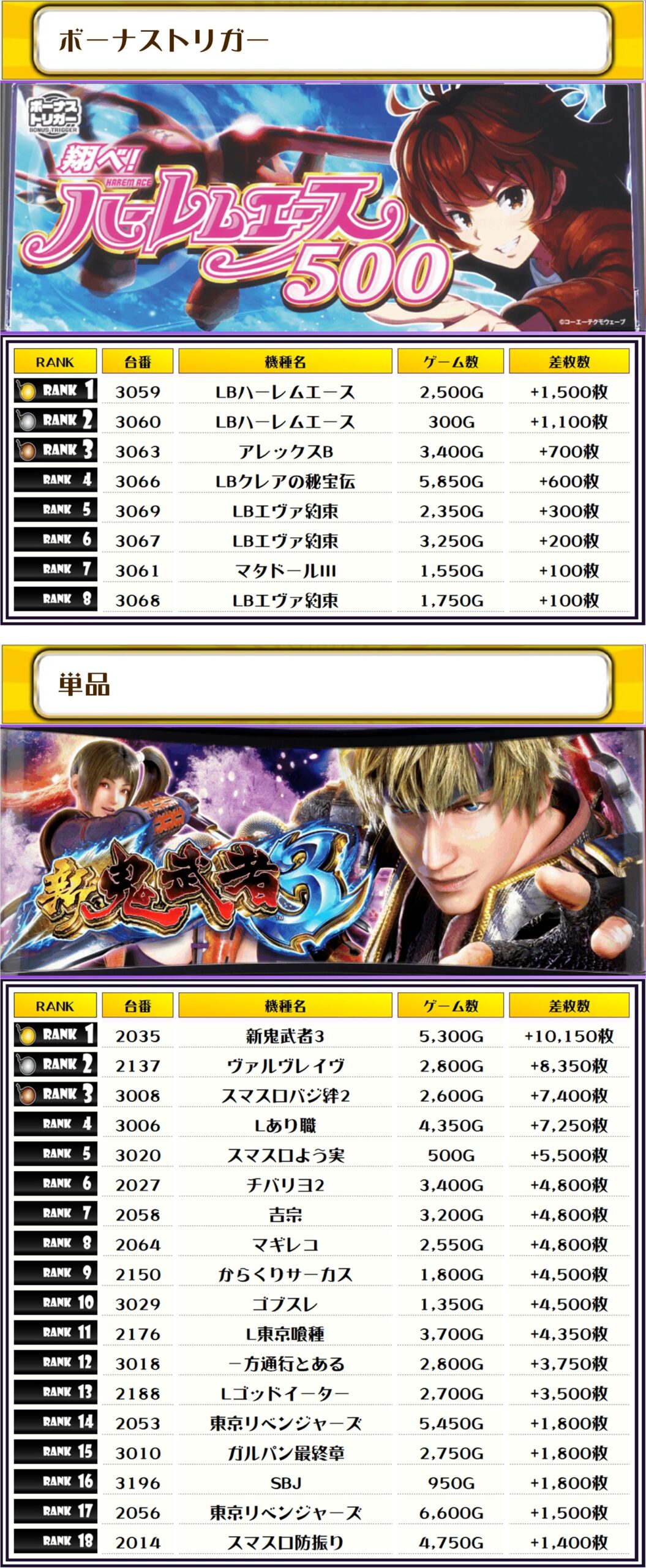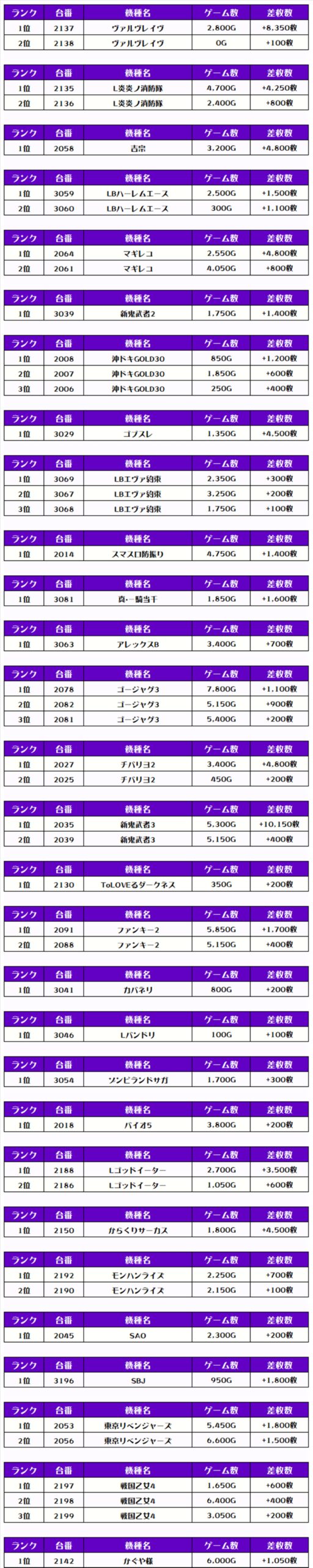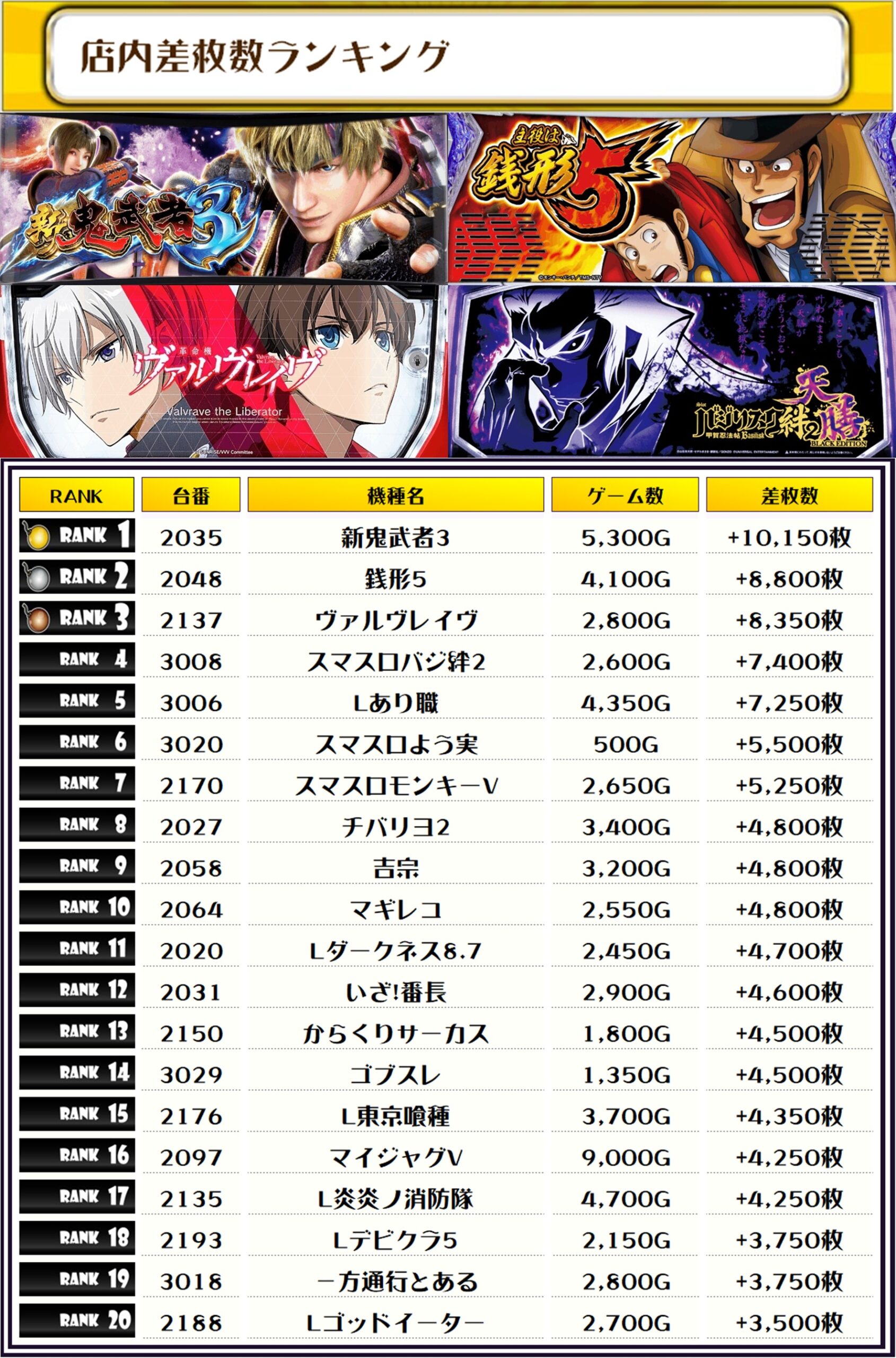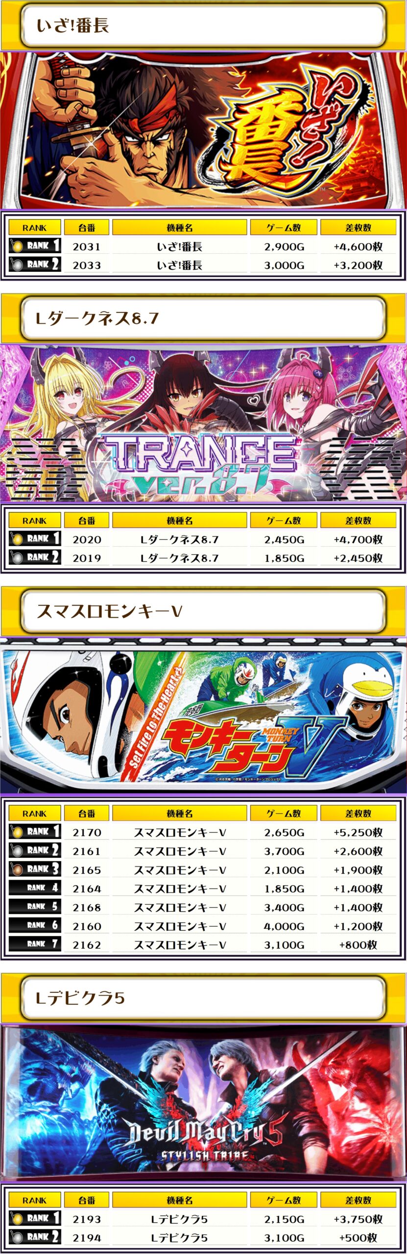 それでは、この日の【機種別差枚ランキング】を見ていこう❗️