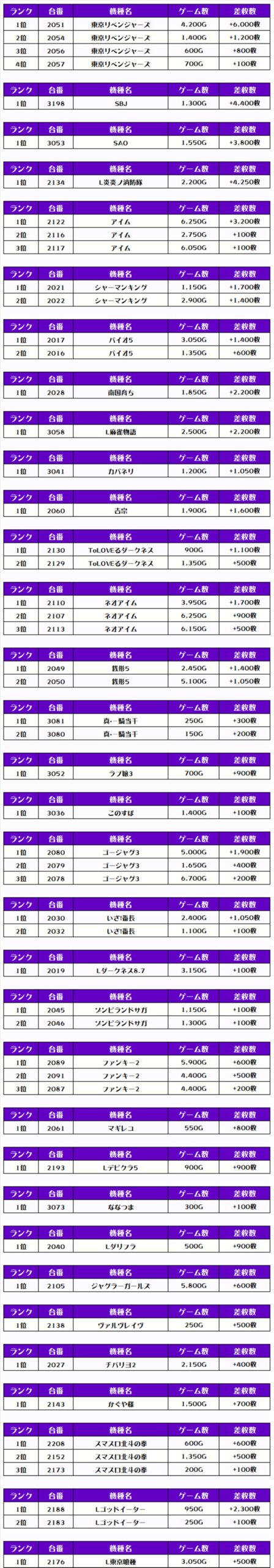 それでは、この日の【機種別差枚ランキング】を見ていきます❗️