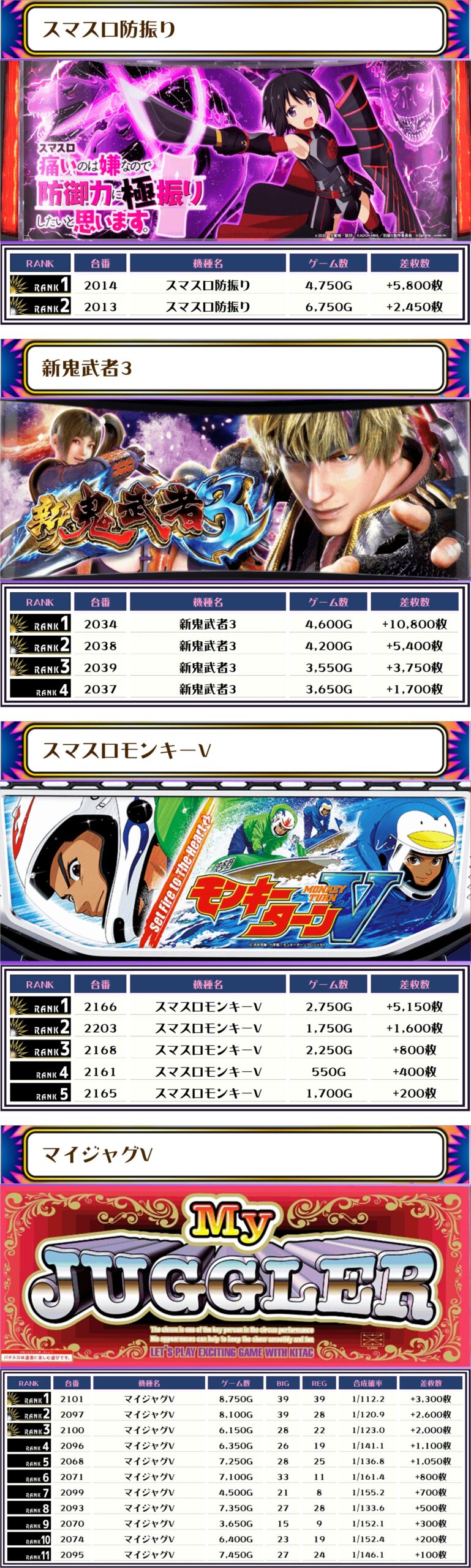 その他の機種の差枚はコチラ🌟
