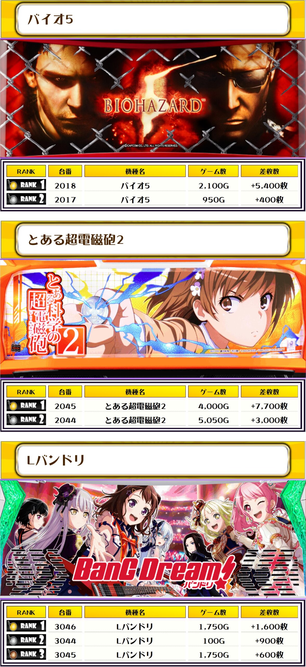 2位には【スマスロ緑ドン・3011番台】の+8,000枚、そして3位には【とある超電磁砲2・2045番台】の+7,700枚がランクインっ🏆