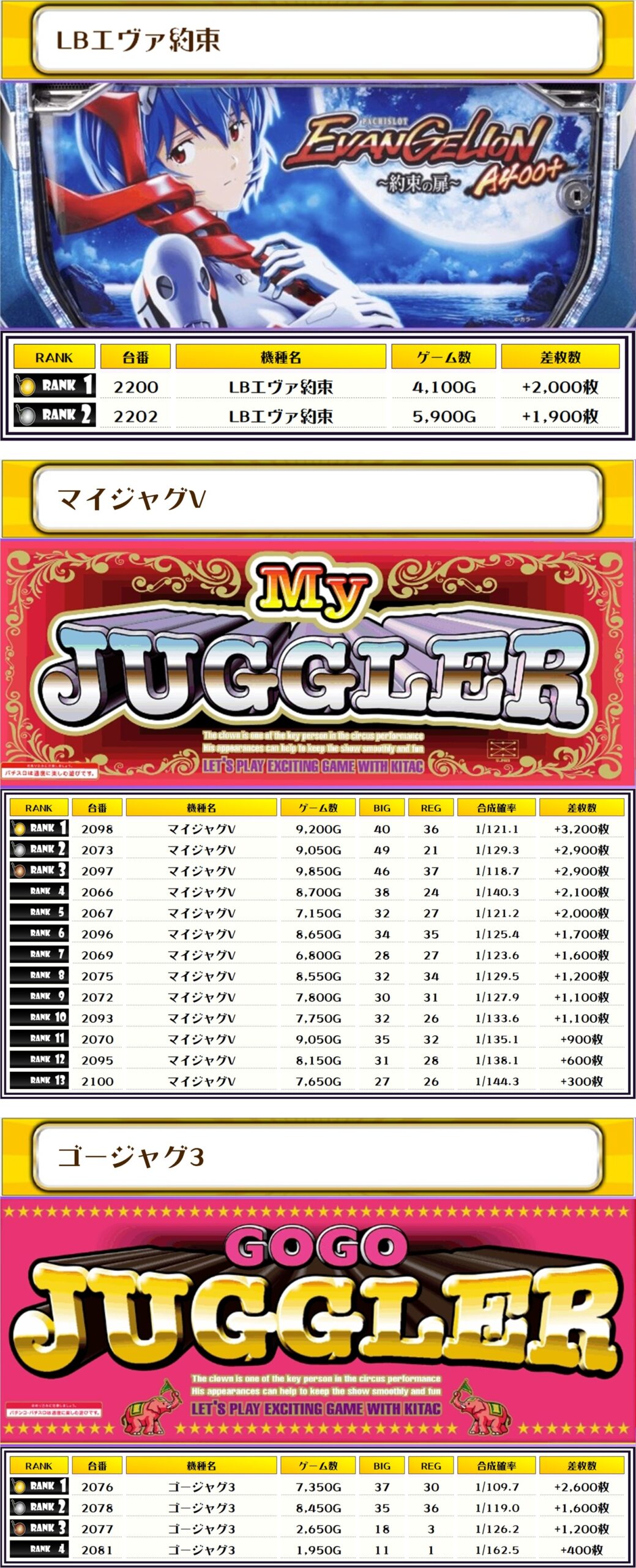 その他の機種の差枚はコチラ🌟