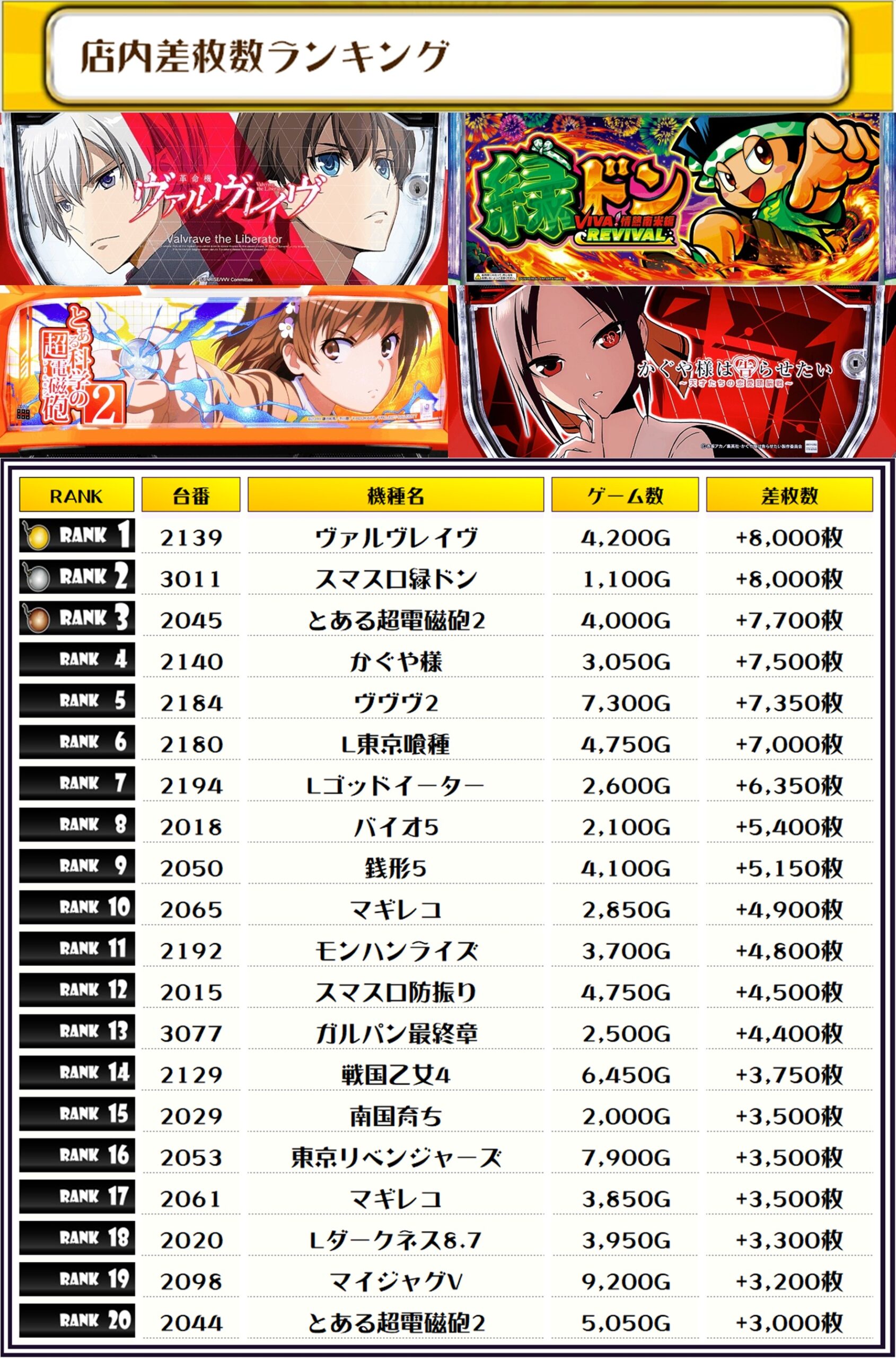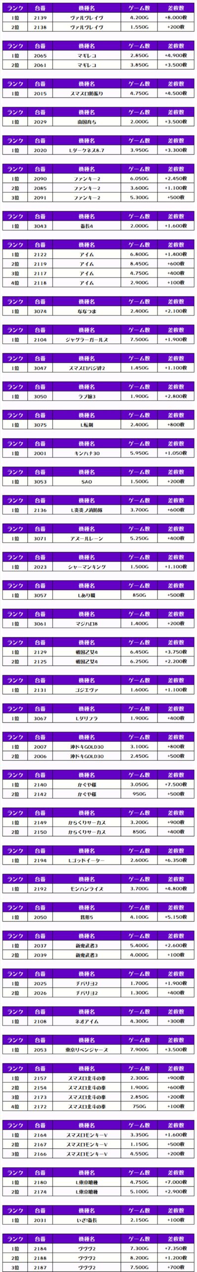 そして、全体の差枚ランキングじゃ🌟