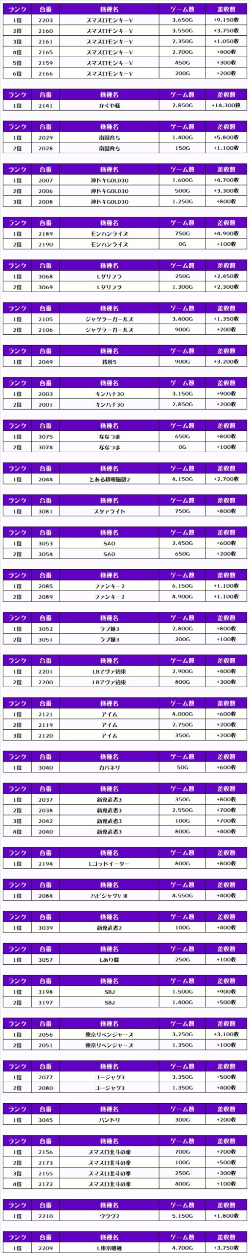 それでは、この日の【機種別差枚ランキング】を見ていくぞ❗️