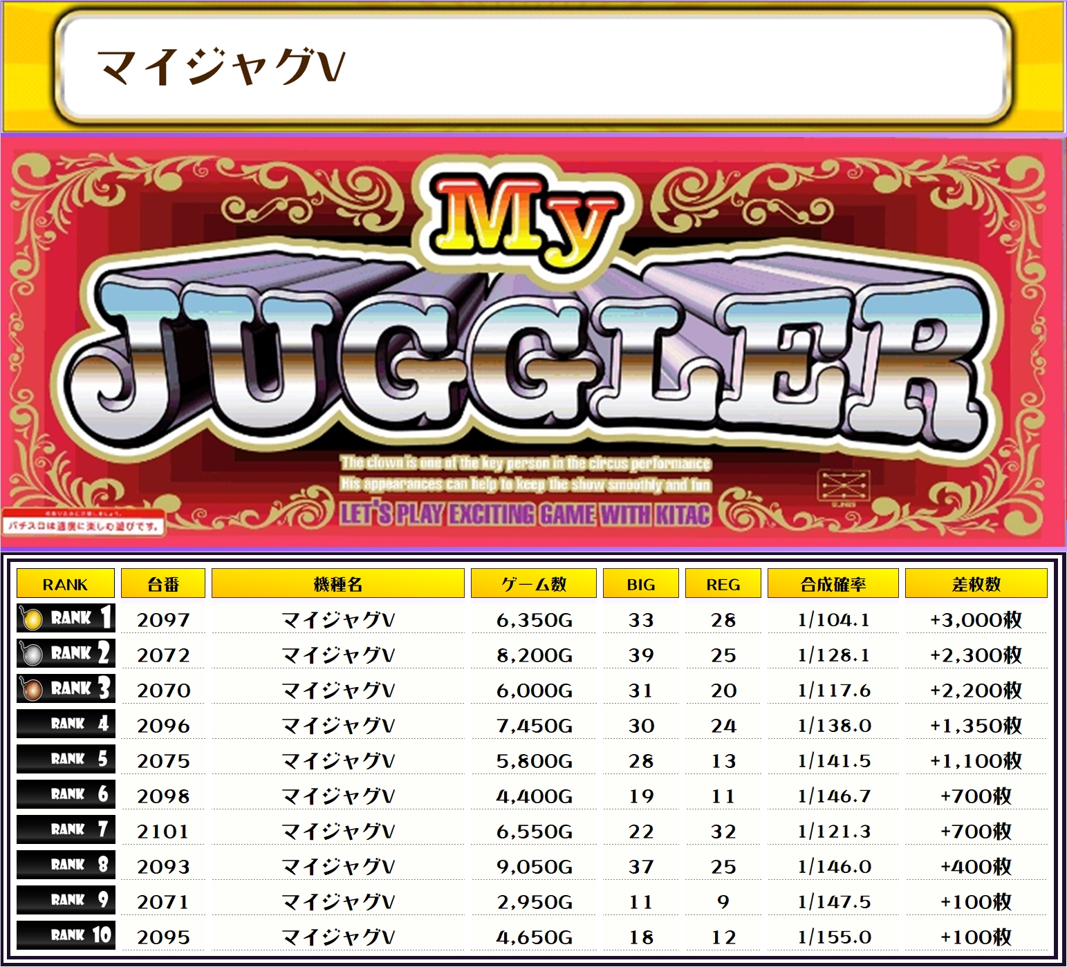 そして、全体の差枚ランキングだ🌟