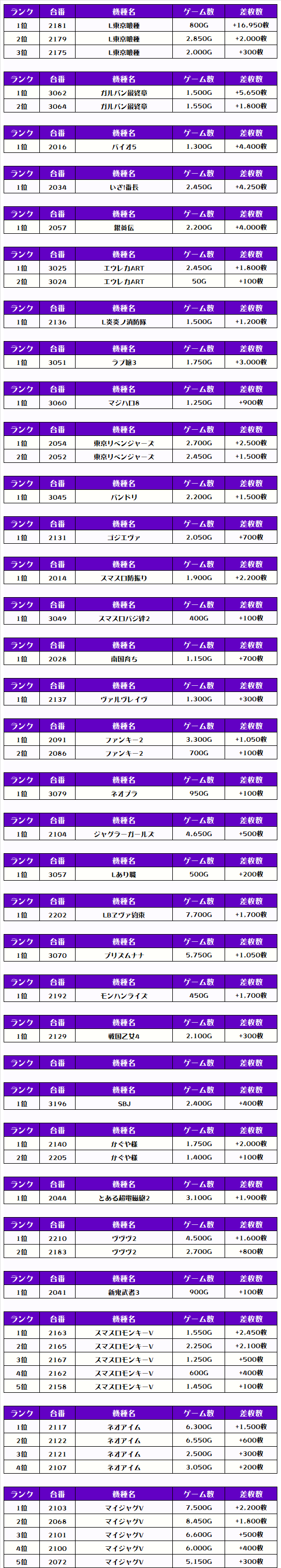 それでは、この日の【機種別差枚ランキング】を見ていきましょう💖