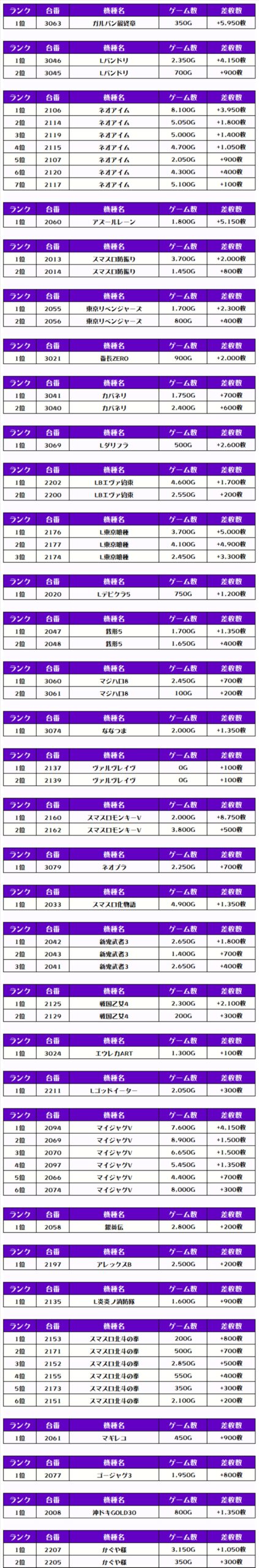 そして、全体の差枚ランキングじゃ🌟