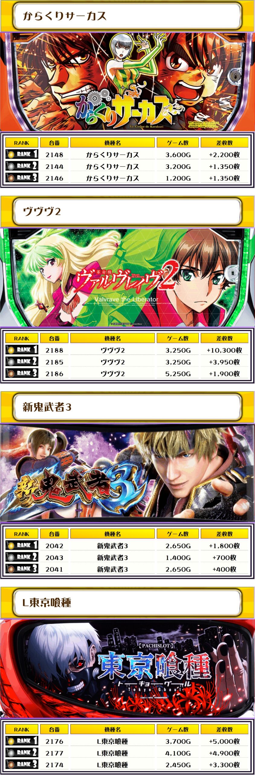 それでは、この日の【機種別差枚ランキング】を見ていこう❗️