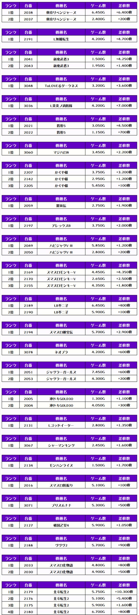 それでは、機種別差枚ランキングをチェックしますか❗️