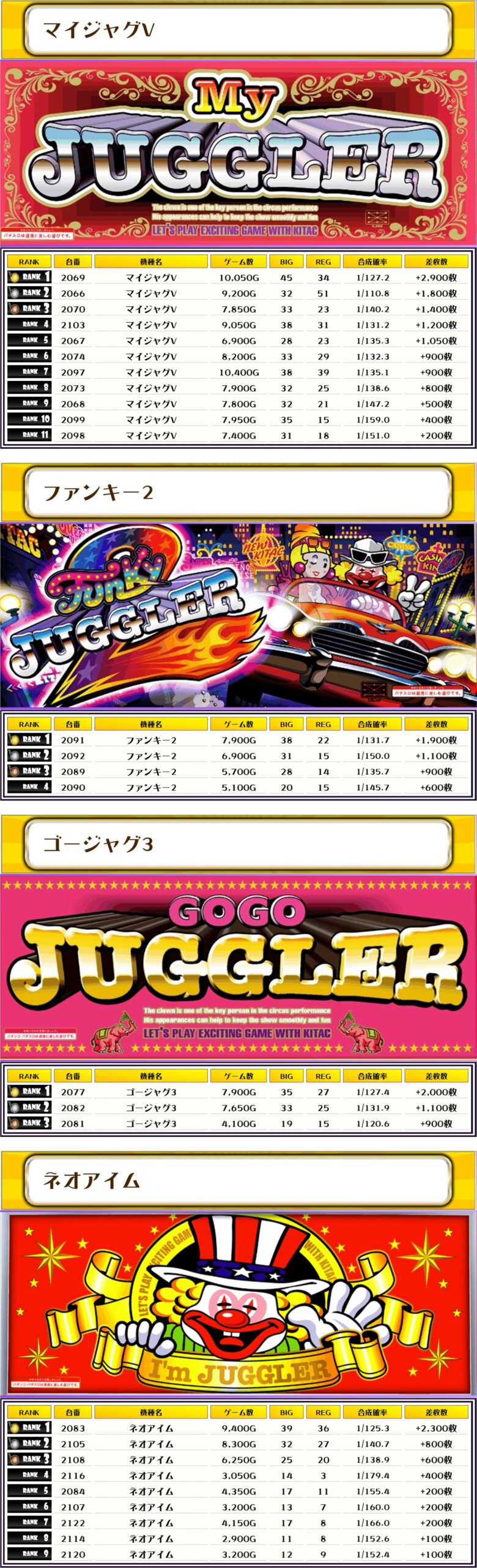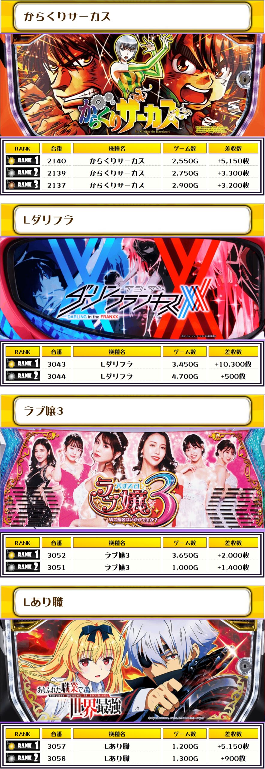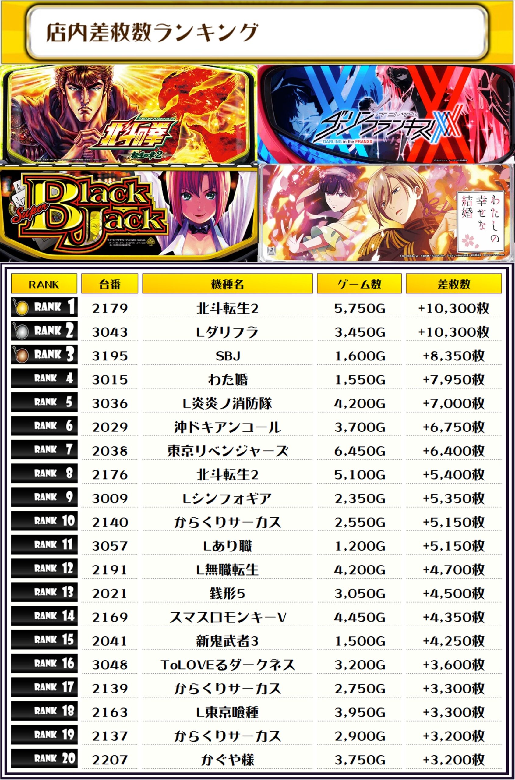最後に、この日の店内差枚ランキングをご覧ください❗️