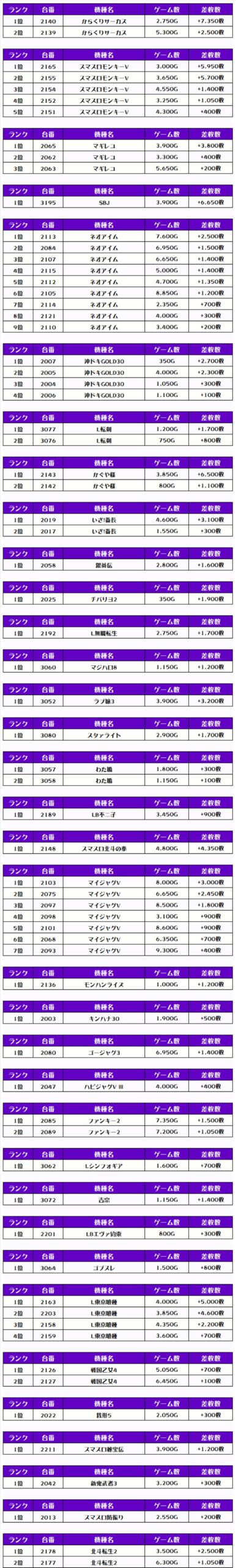 それでは早速、この日の【機種別差枚ランキング】を見ていきます❗️