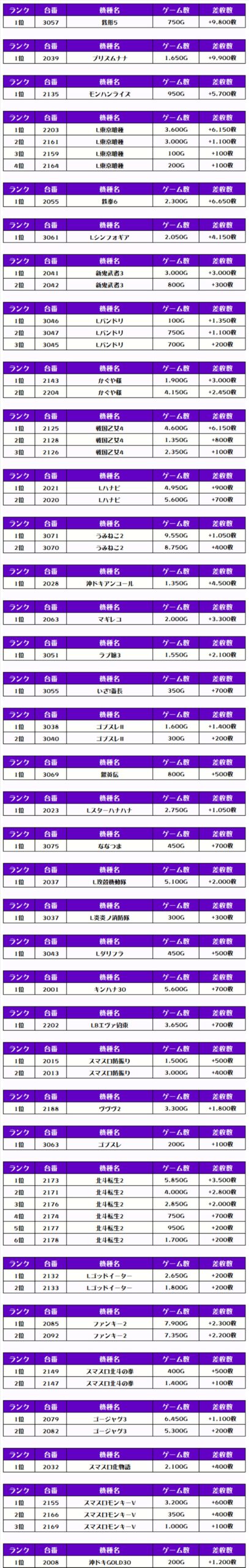 それでは、この日の【機種別差枚ランキング】を見ていきましょう❗️