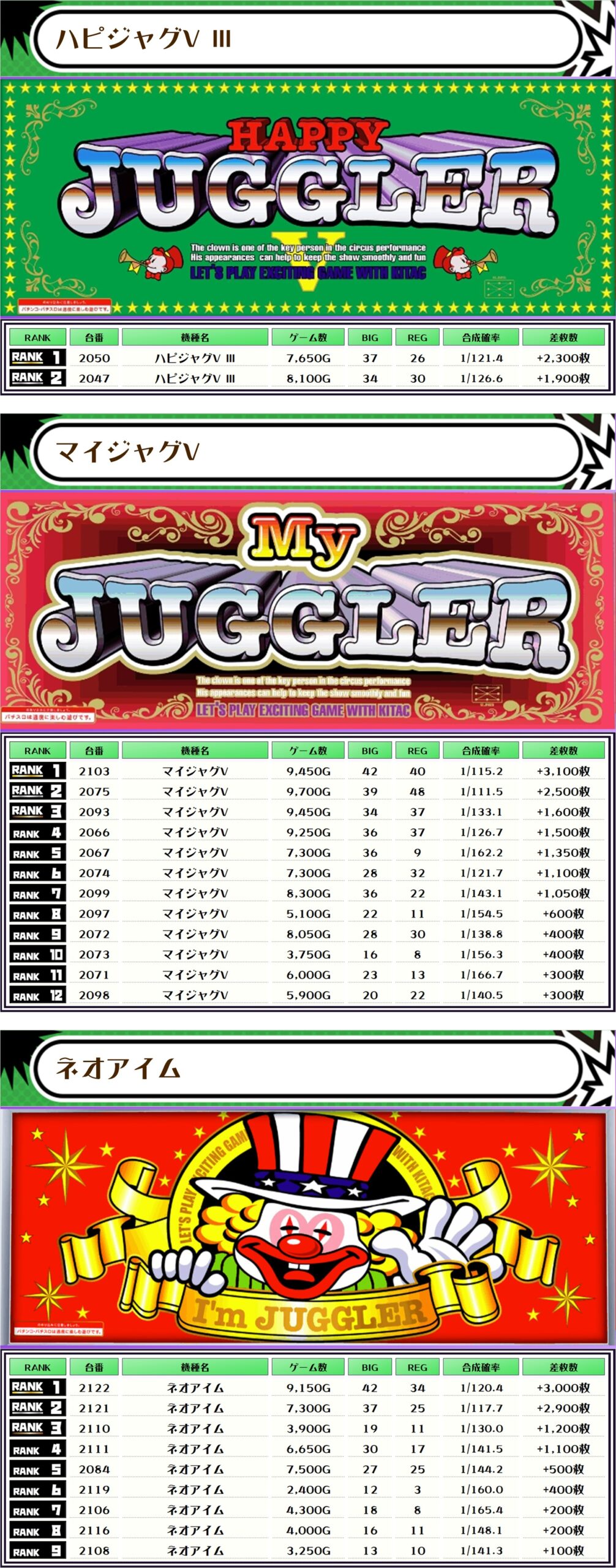 今回もジャグ系の稼働がとにかく目立ちましたね👀