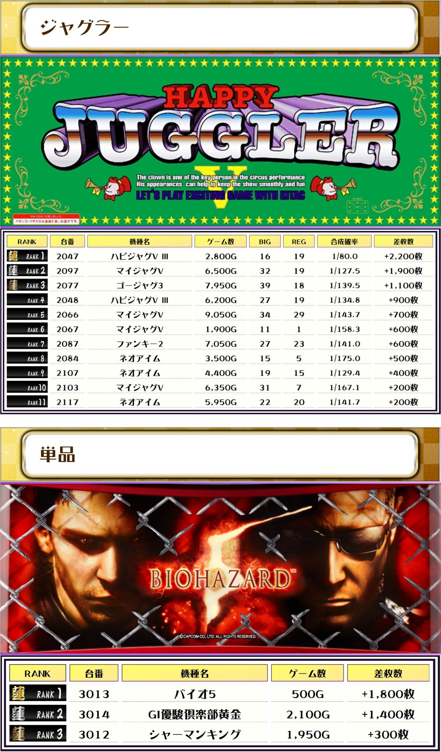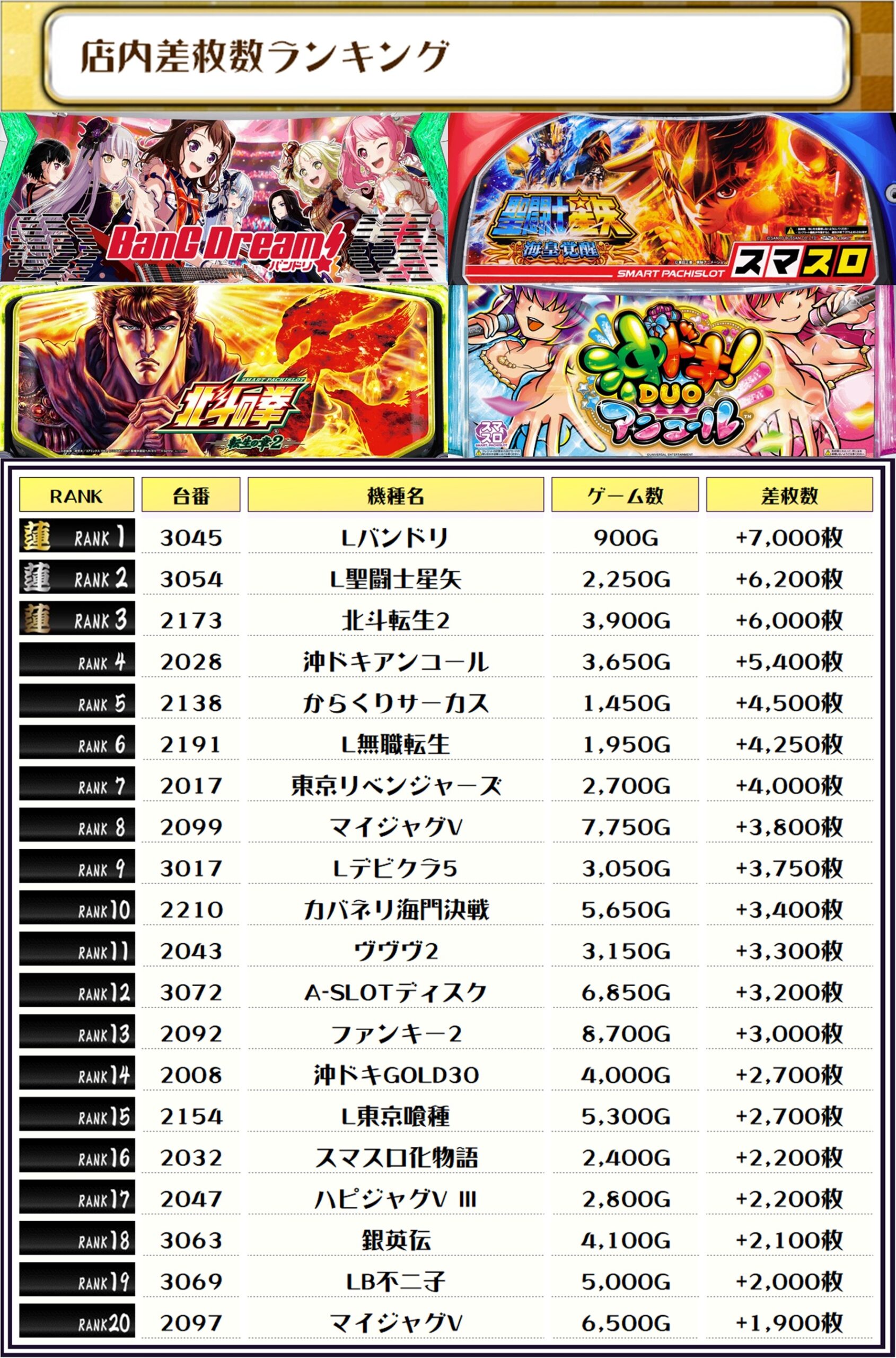 最後に、この日の店内差枚ランキングをご覧ください❗️