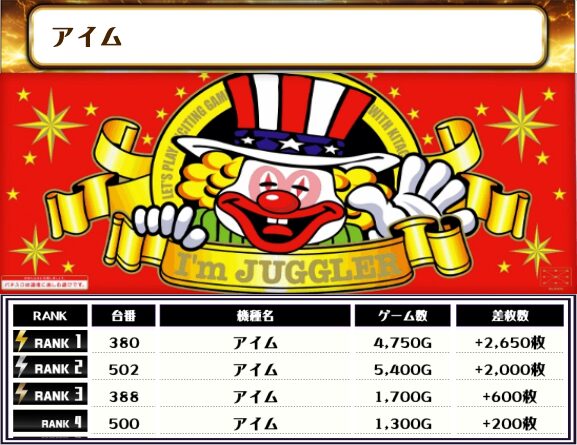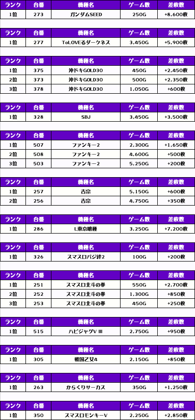 それでは、この日の【機種別差枚ランキング】を見ていきましょう❗️