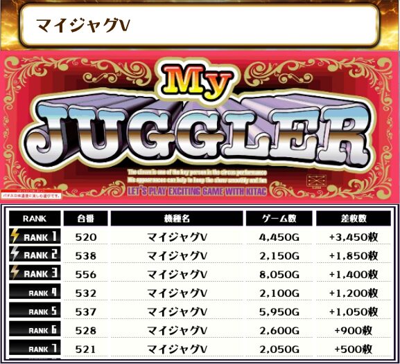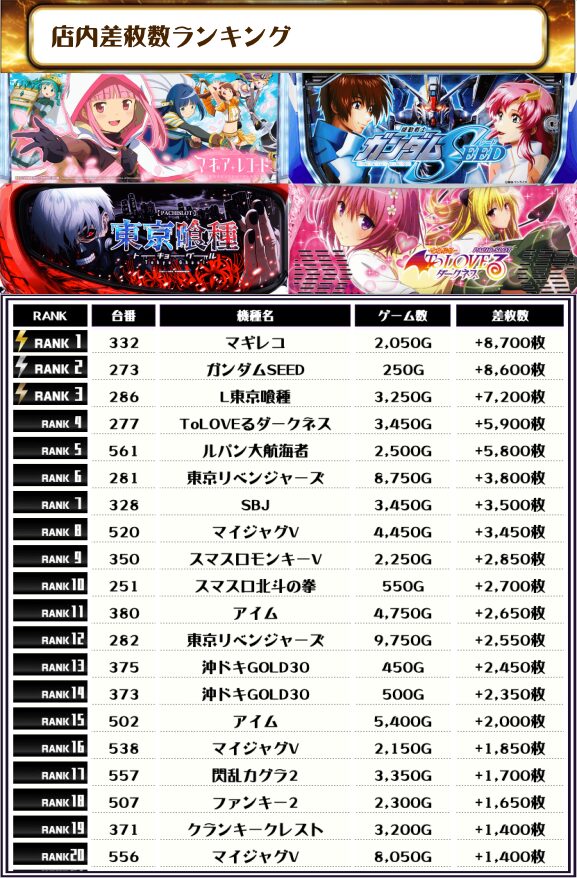 続いては「店内全台の差枚ランキング」をご覧ください!