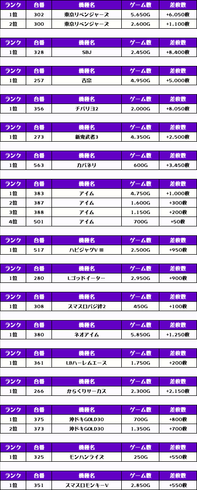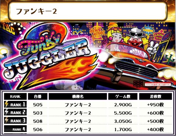 それでは、この日の【機種別差枚ランキング】を見ていきましょう❗️