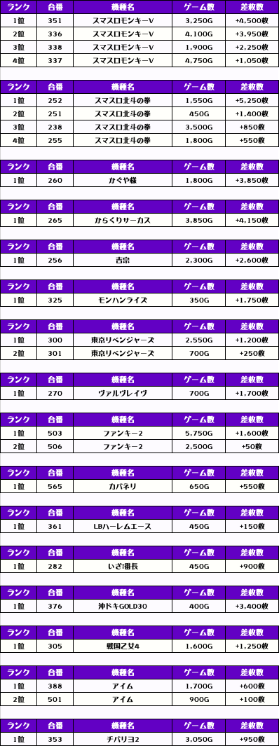 それでは、この日の【機種別差枚ランキング】を見ていきましょう❗️