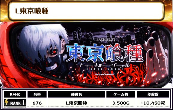 ということで、この日の全体差枚トップは【L東京喰種・676番台】で+10,450枚‼️