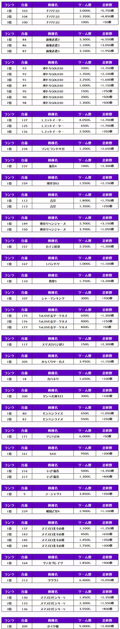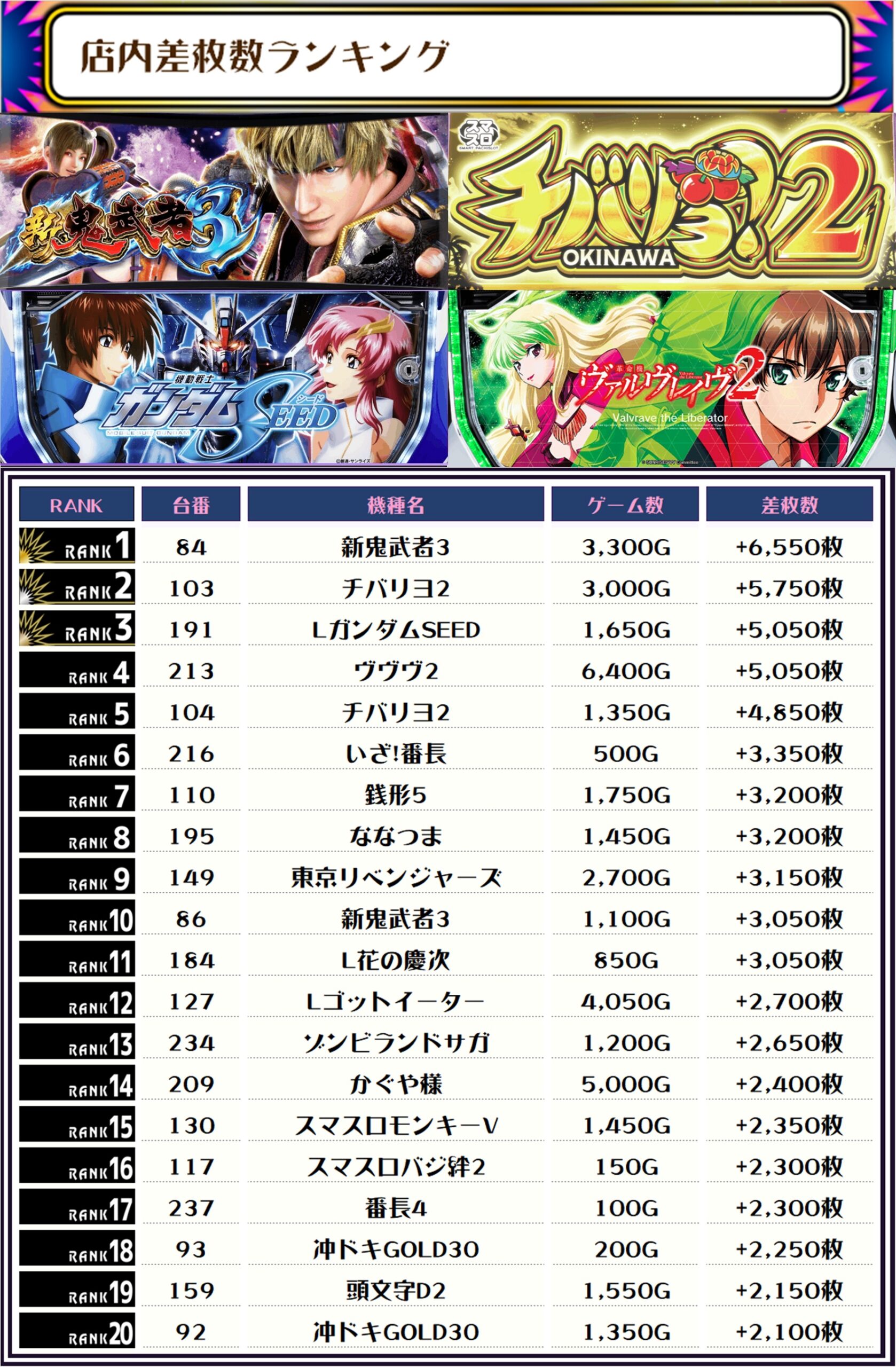 続いては【店内全台の差枚ランキング】をご覧ください!