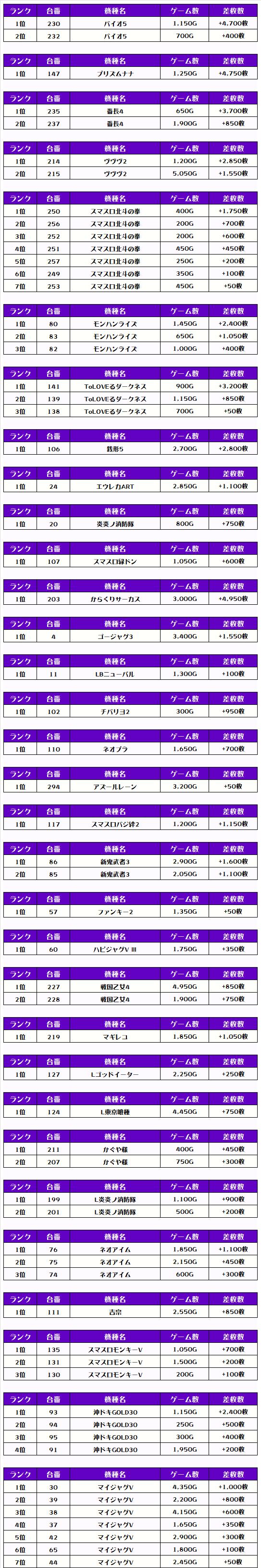 次は機種別の差枚ランキングをどうぞ❗️