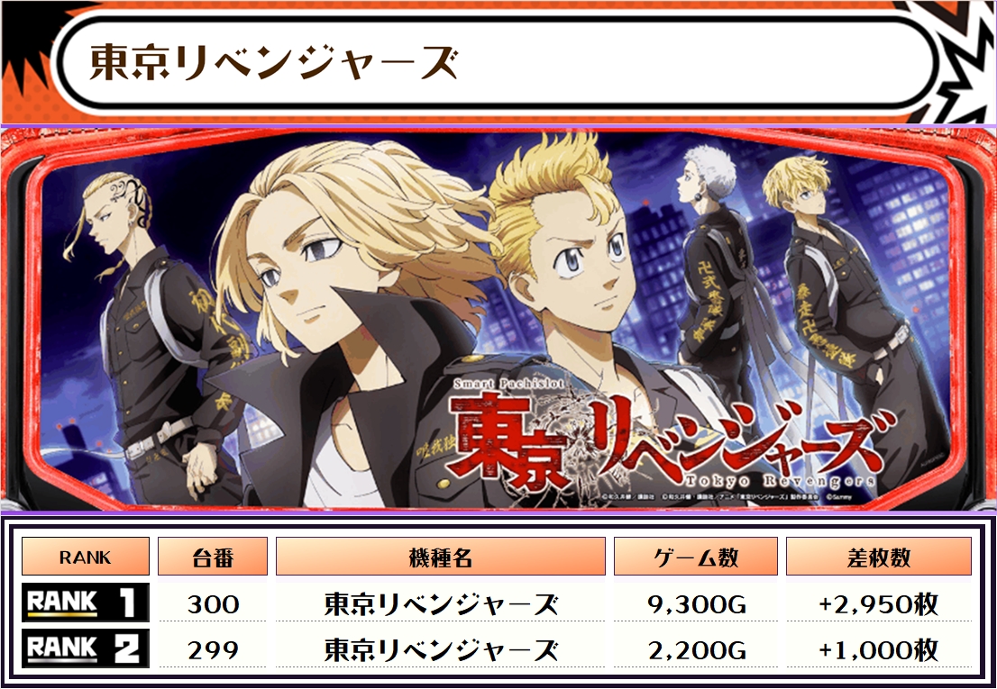続いては【店内全台の差枚ランキング】をご覧ください!