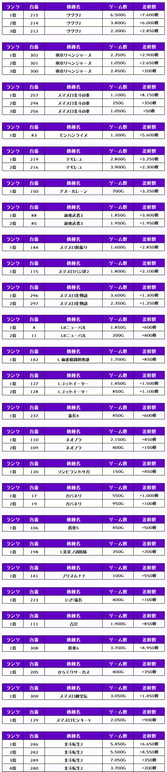 2位には【ヴヴヴ2・215番台】の+7,600枚、そして3位には【北斗転生2・246番台】の+6,650枚がランクイン💥💥💥💥💥