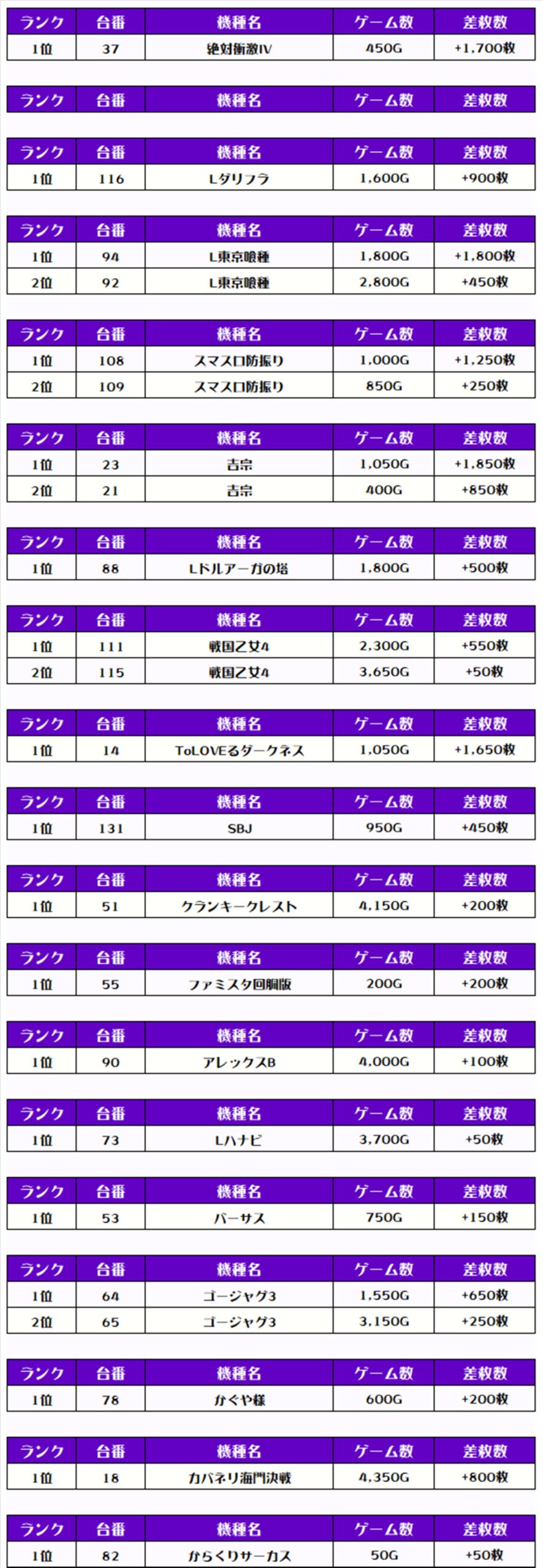 その他の機種の差枚はコチラ❗️