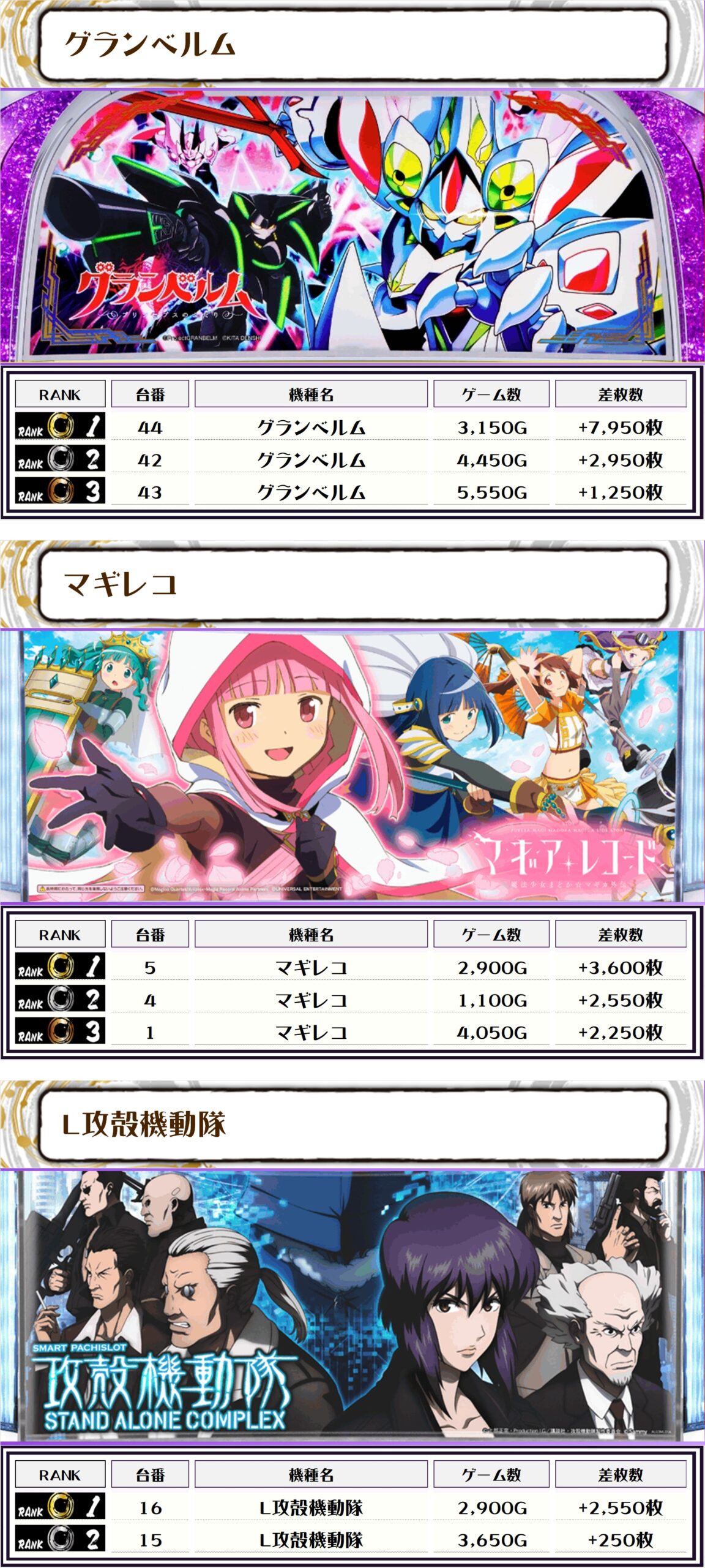 それでは早速【機種別差枚ランキング】をチェックしていきましょう🙆‍♀️