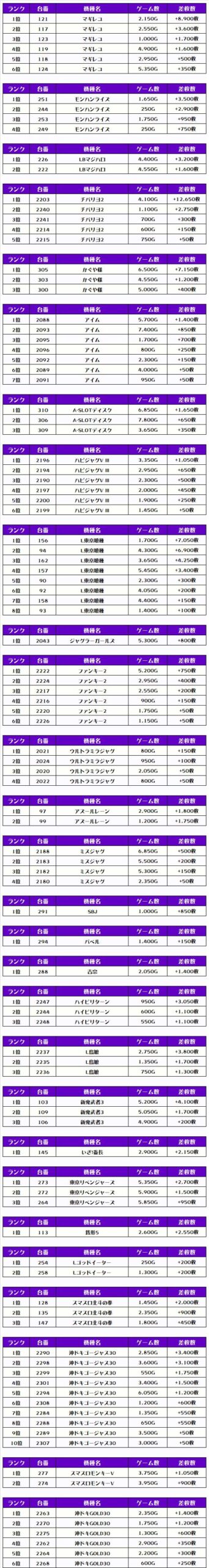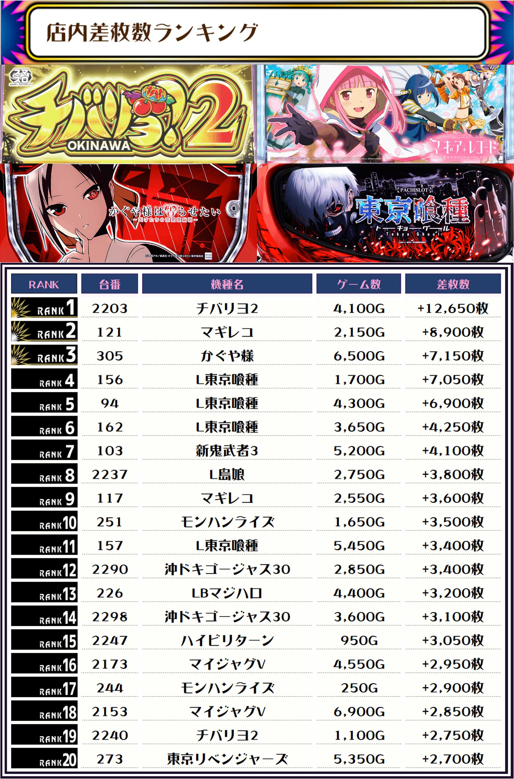 そして、全体の差枚ランキングです❗️