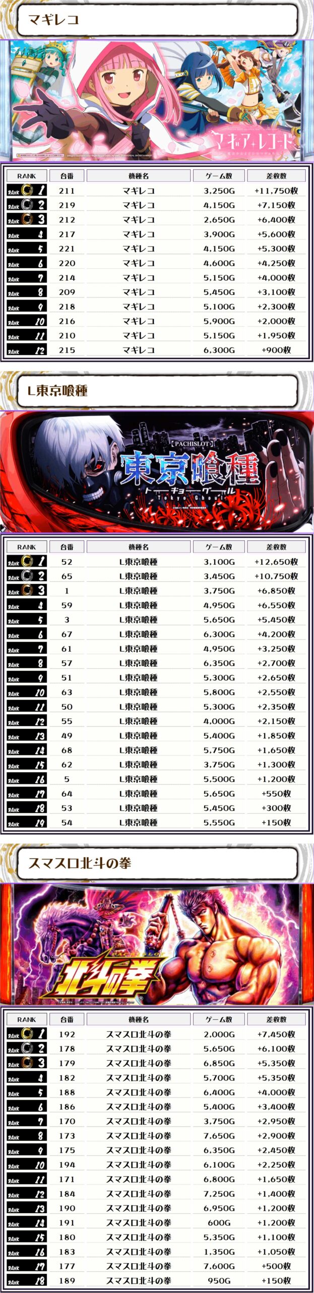 マギレコ・L東京喰種・スマスロ北斗の拳は稼働だけでなく、シマ単位での勝率もバツグンでした🎉🎉🎉