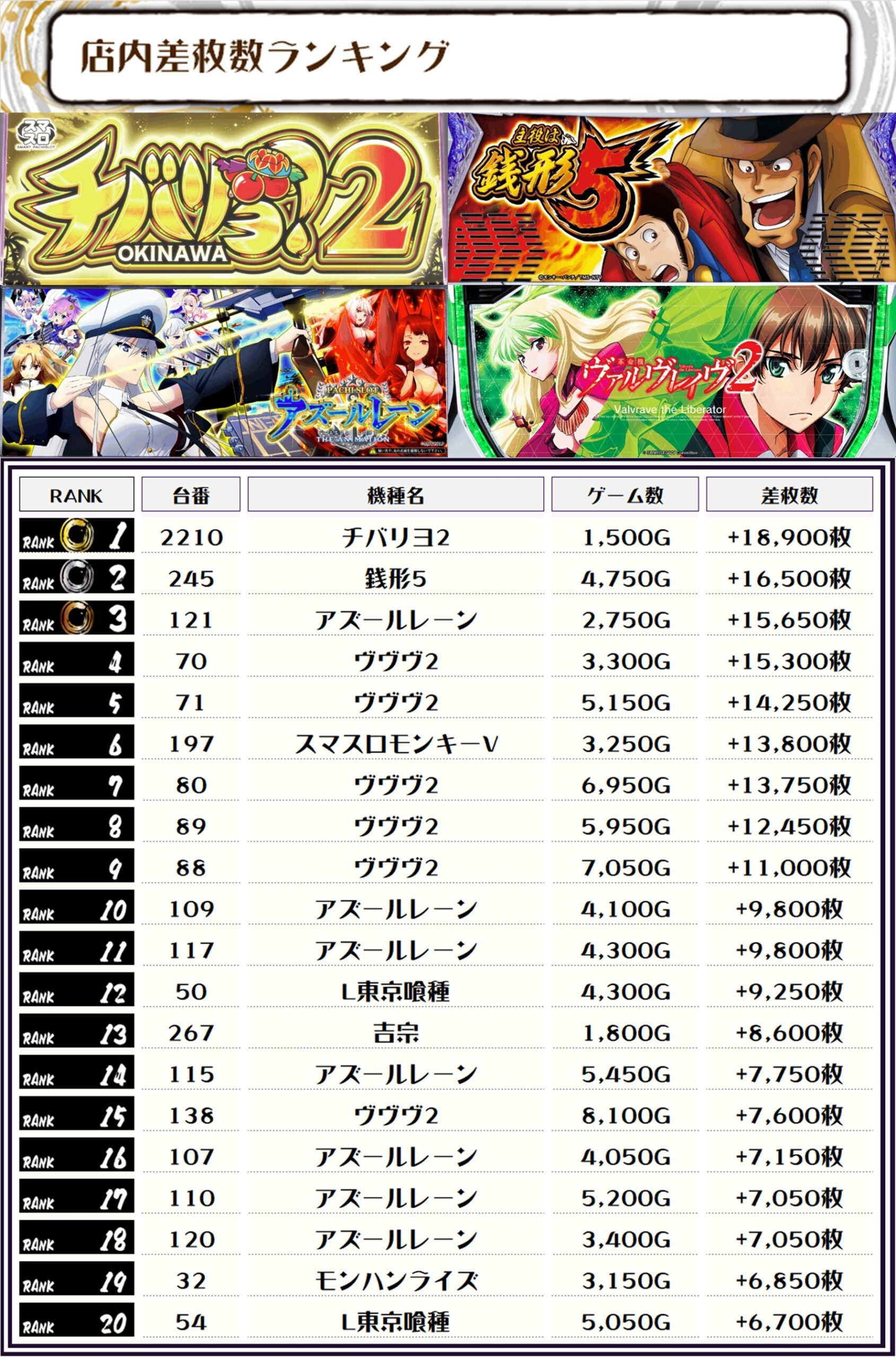 この日、全体の差枚トップに輝いたのは【チバリヨ2・2210番台】で+18,900枚‼️